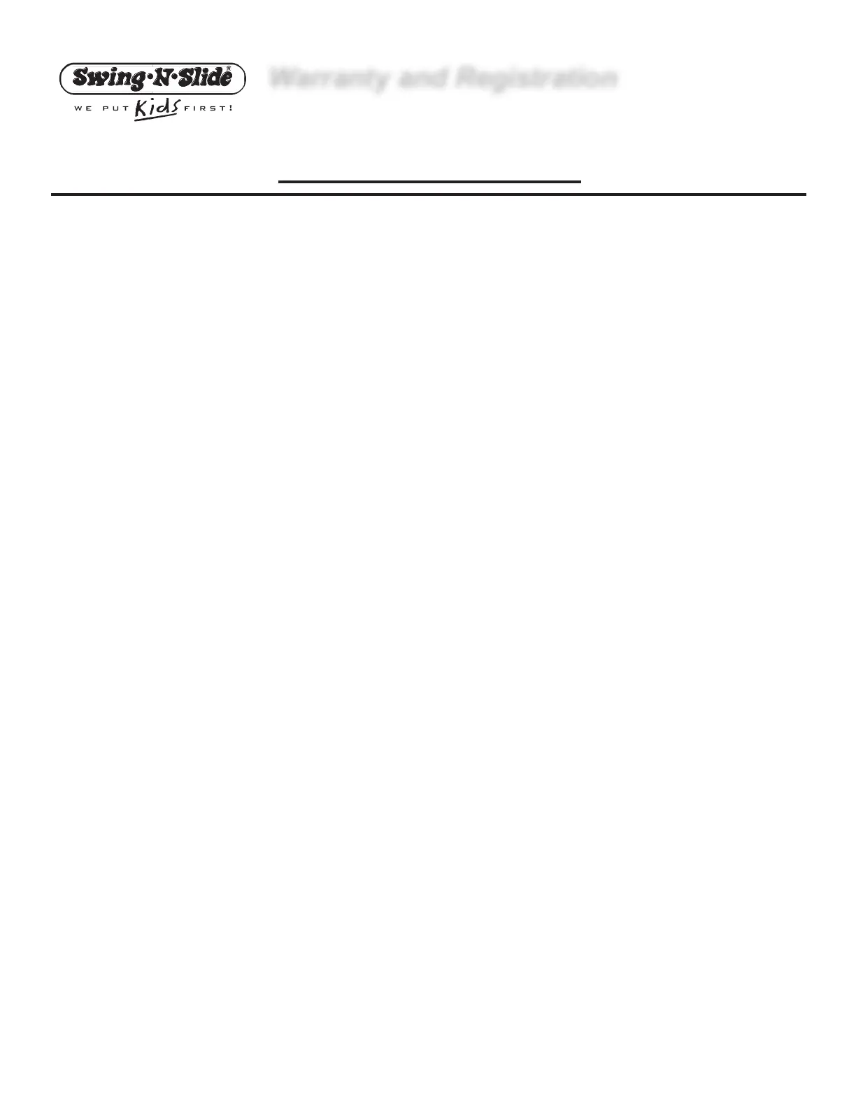 Swing-N-Slide® takes great pride in the quality and durability of our products. Our Manufacturer’s Limited Warranty provides confi dence and