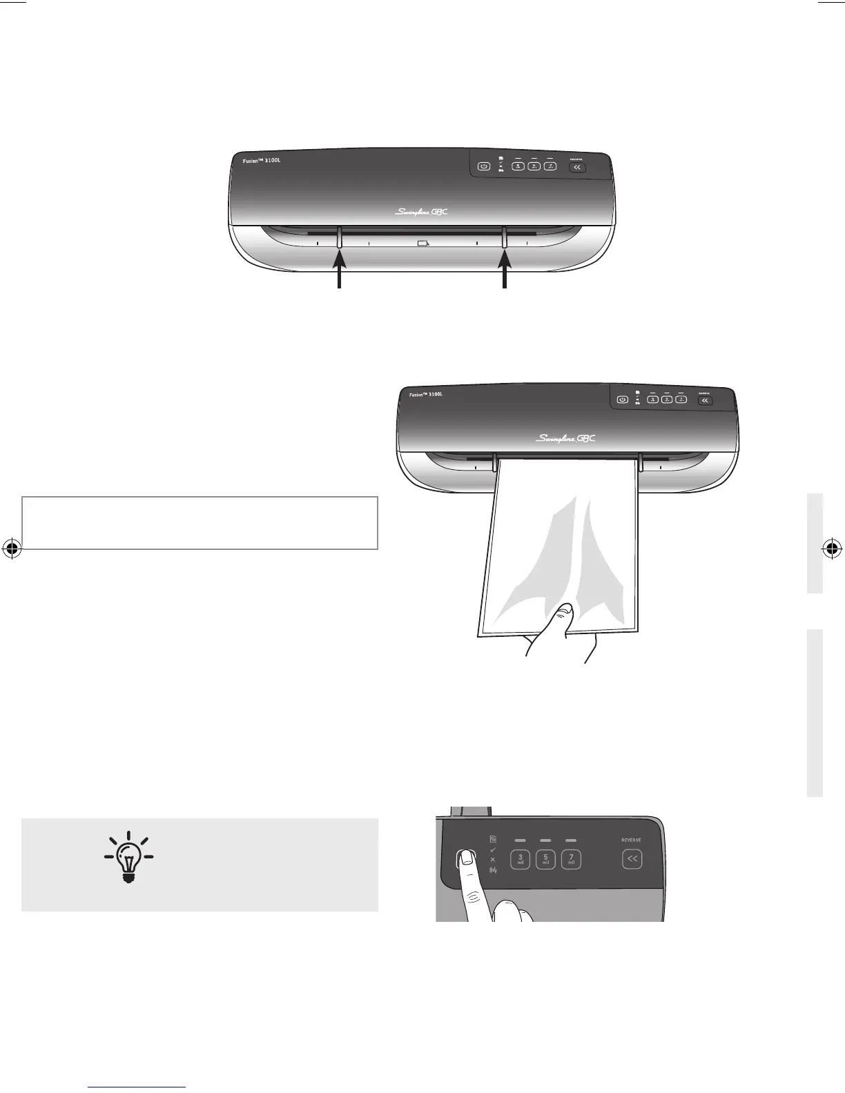 1 On the front of the laminator there are adjustable guides to help you feed your pouch accurately.