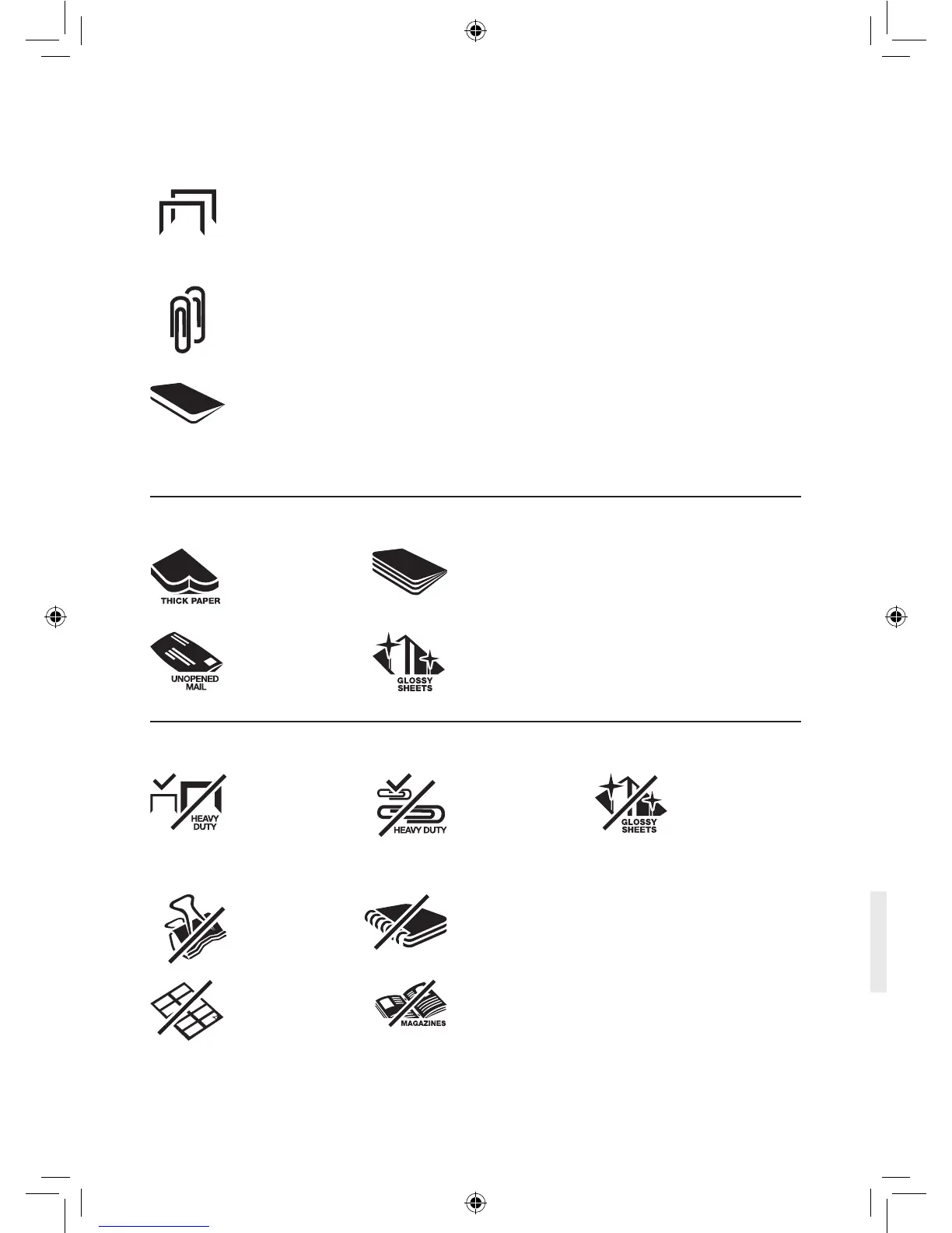 • Paper clip paper, 25mm within the corner (100M through manual feed slot ONLY)