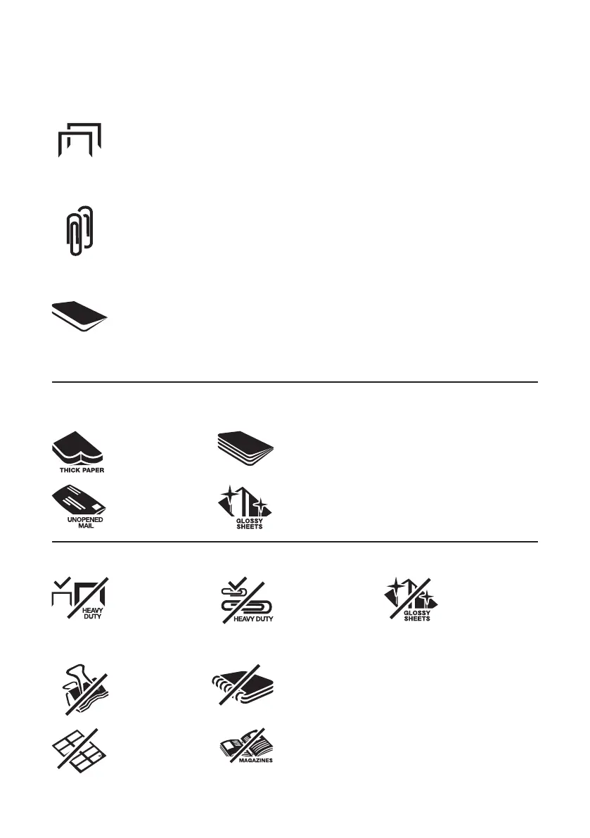• Clipes de papel pequenos/médios (espessura máxima do arame = 0,9 mm)