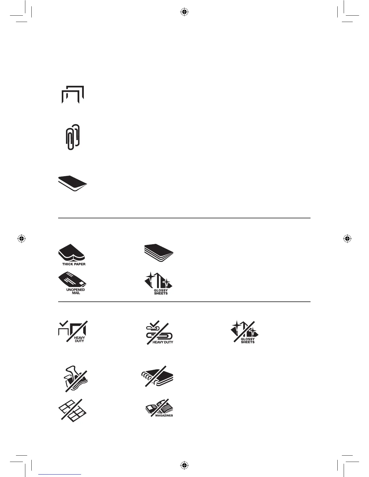 • Clipes de papel pequenos/médios (espessura máxima do arame = 0,9 mm)