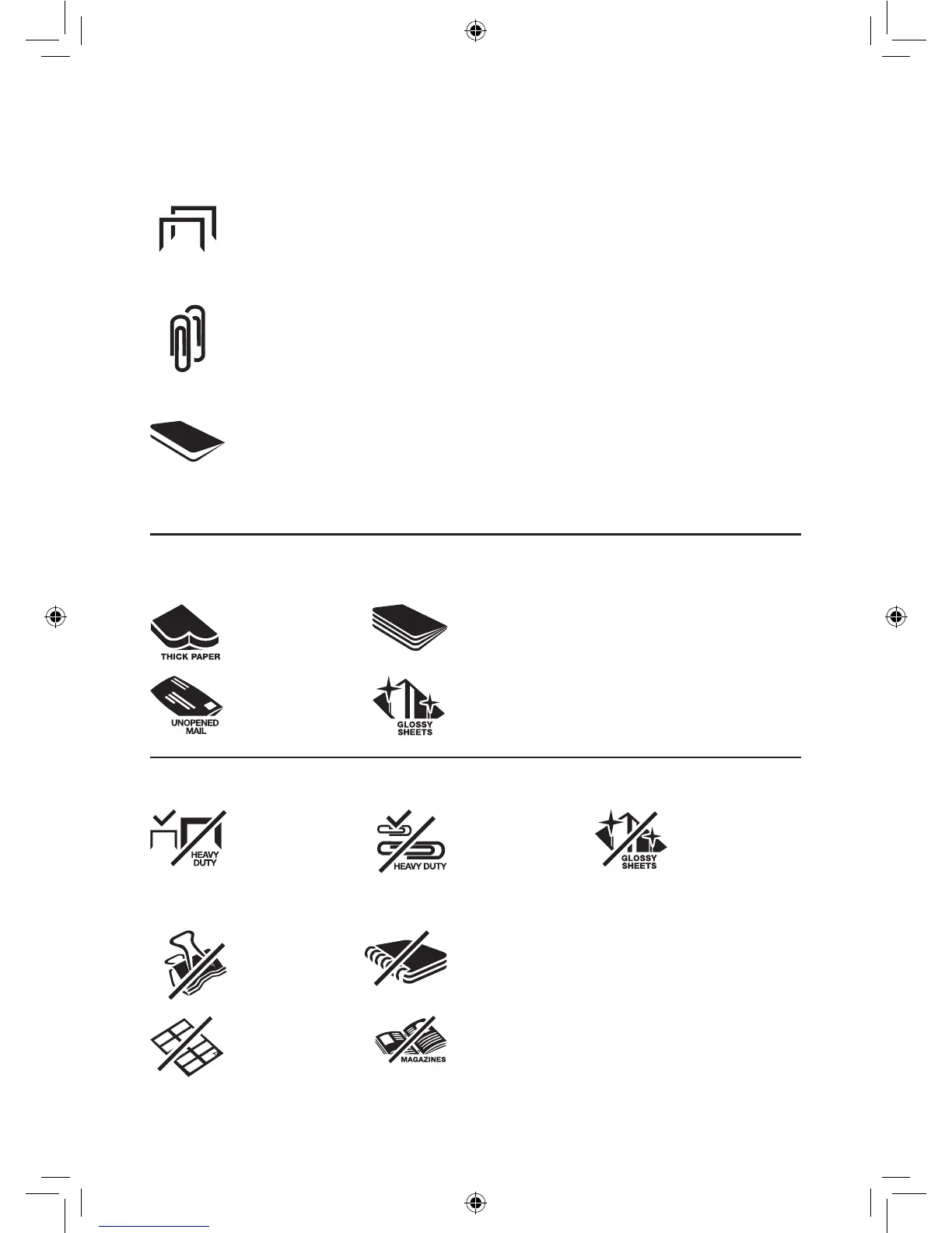 • Clips de papel pequeños/medianos (grosor máximo del alambre = 0,9 mm)