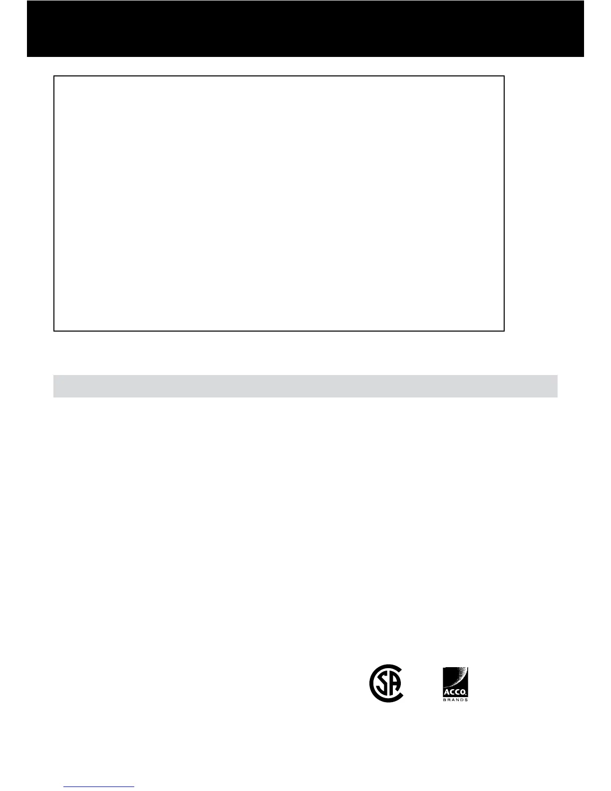 Toutes modifications apportées à ce dispositif et non approuvées par ACCO Brands Corporation annuleront le droit accordé à l’utilisateur par le FCC