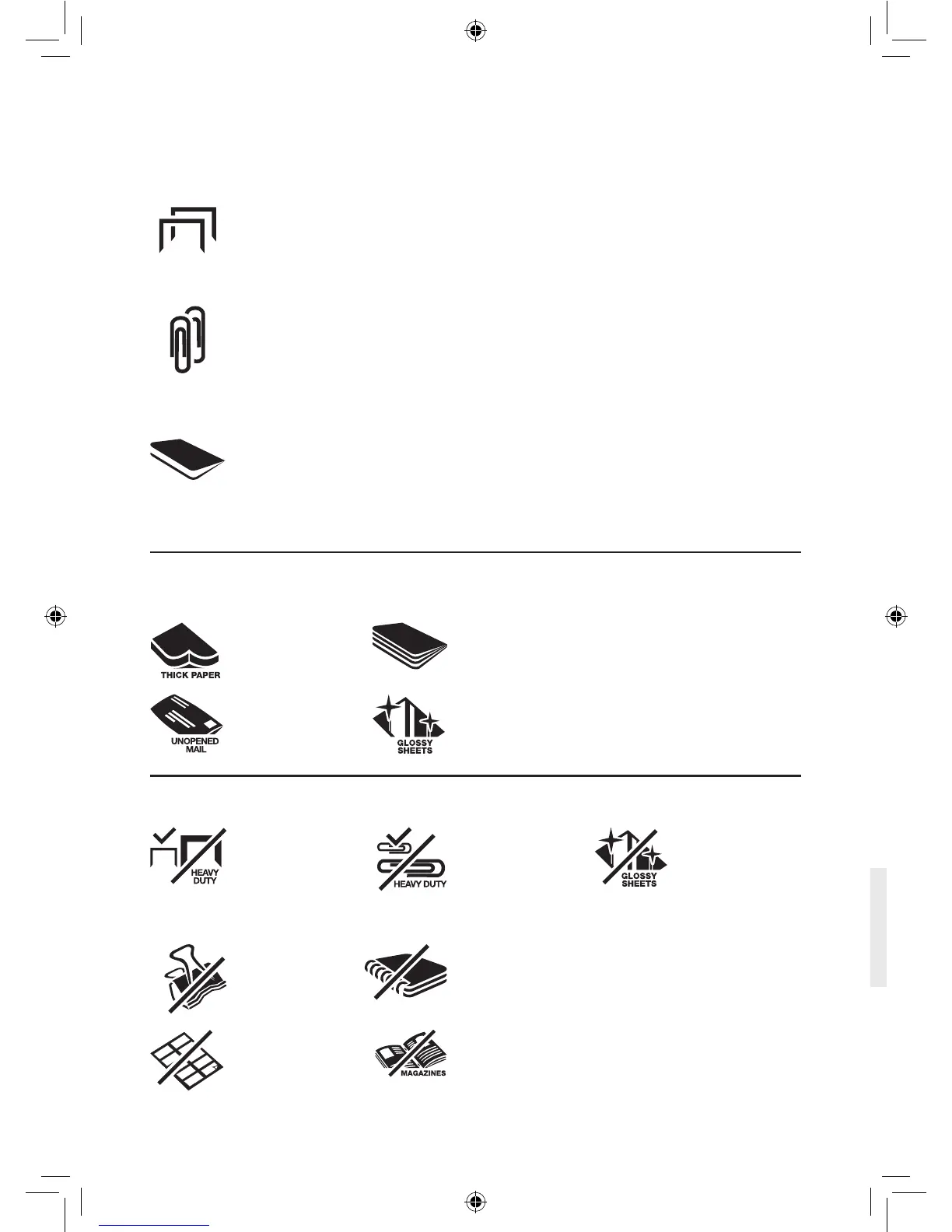 • Clipes de papel pequenos/médios (espessura máxima do arame = 0,9 mm)