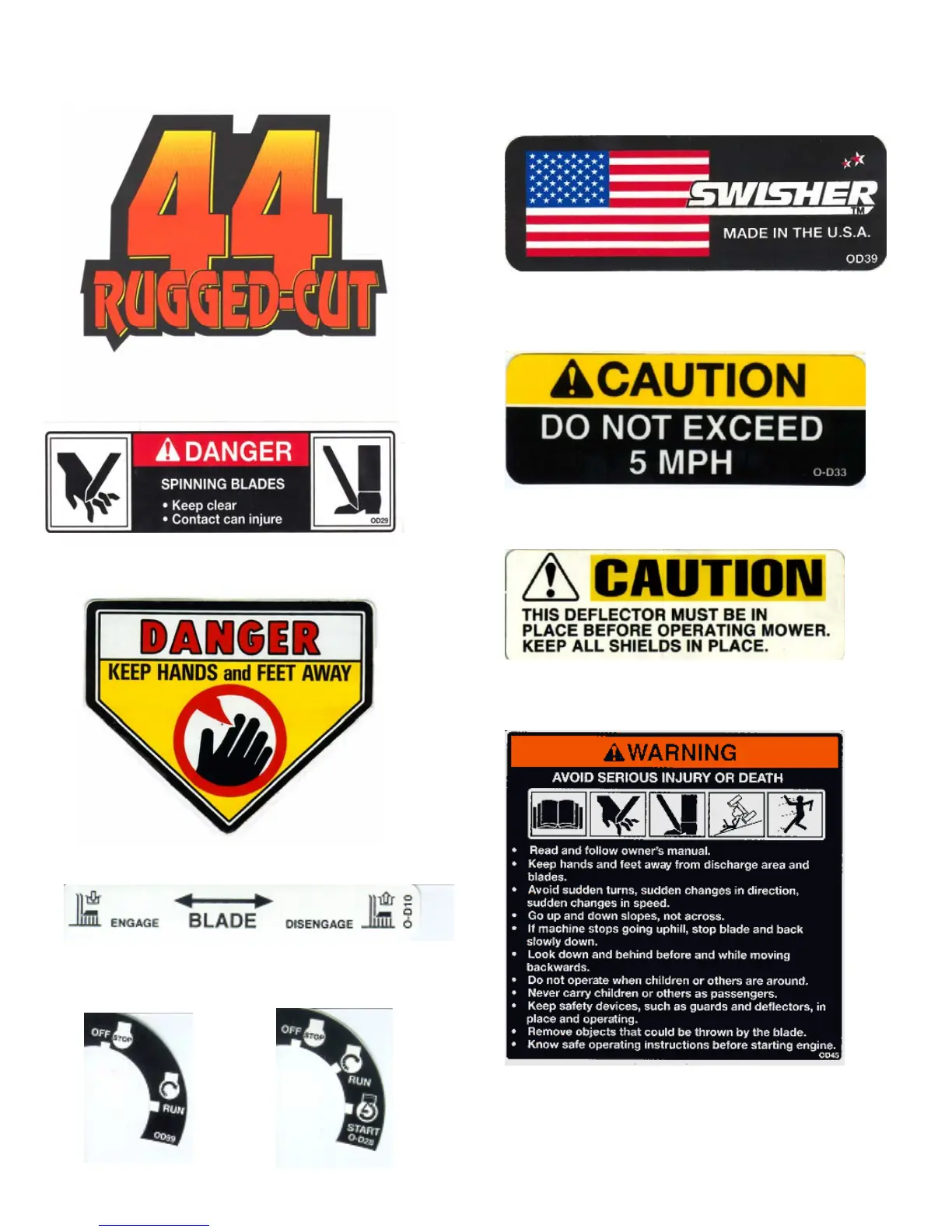 Swisher RTB115441 - Safety and Operational Decals