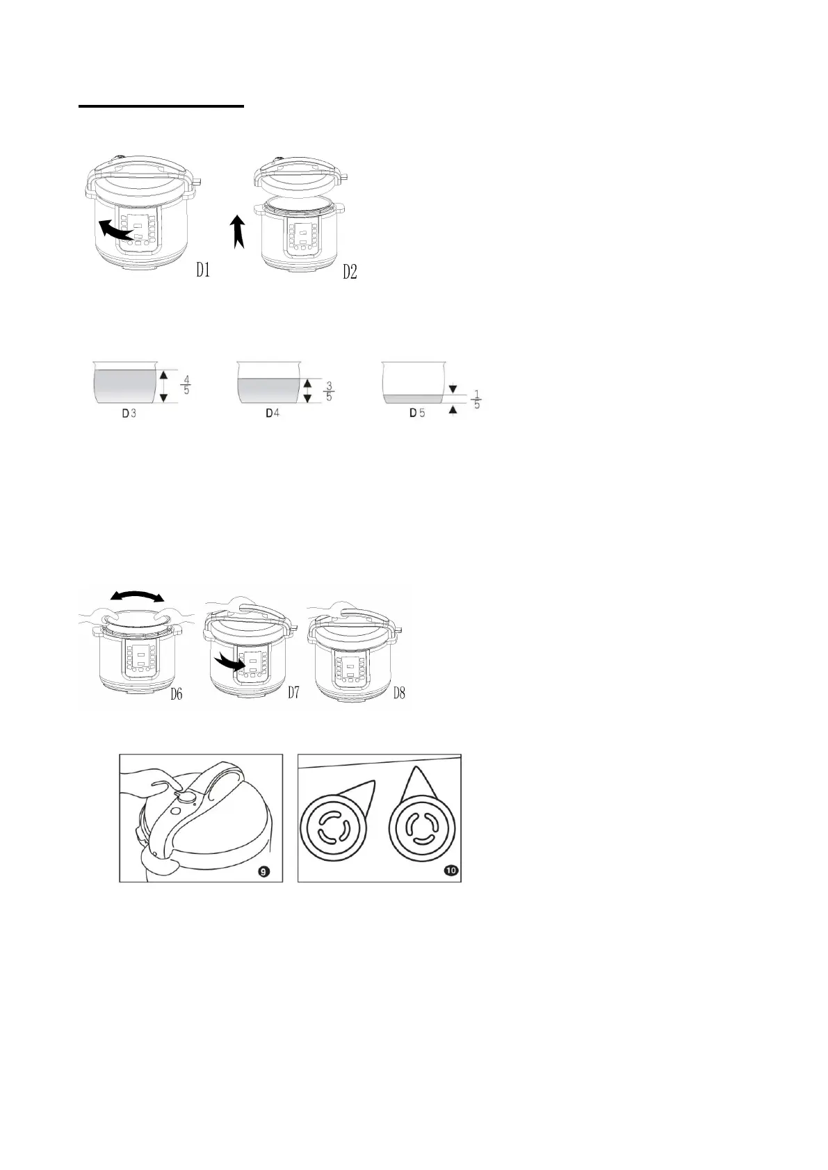 superiori a 4/5 e non inferiori a 1/5 dell'altezza della pentola interna. Per il cibo espandibile, non