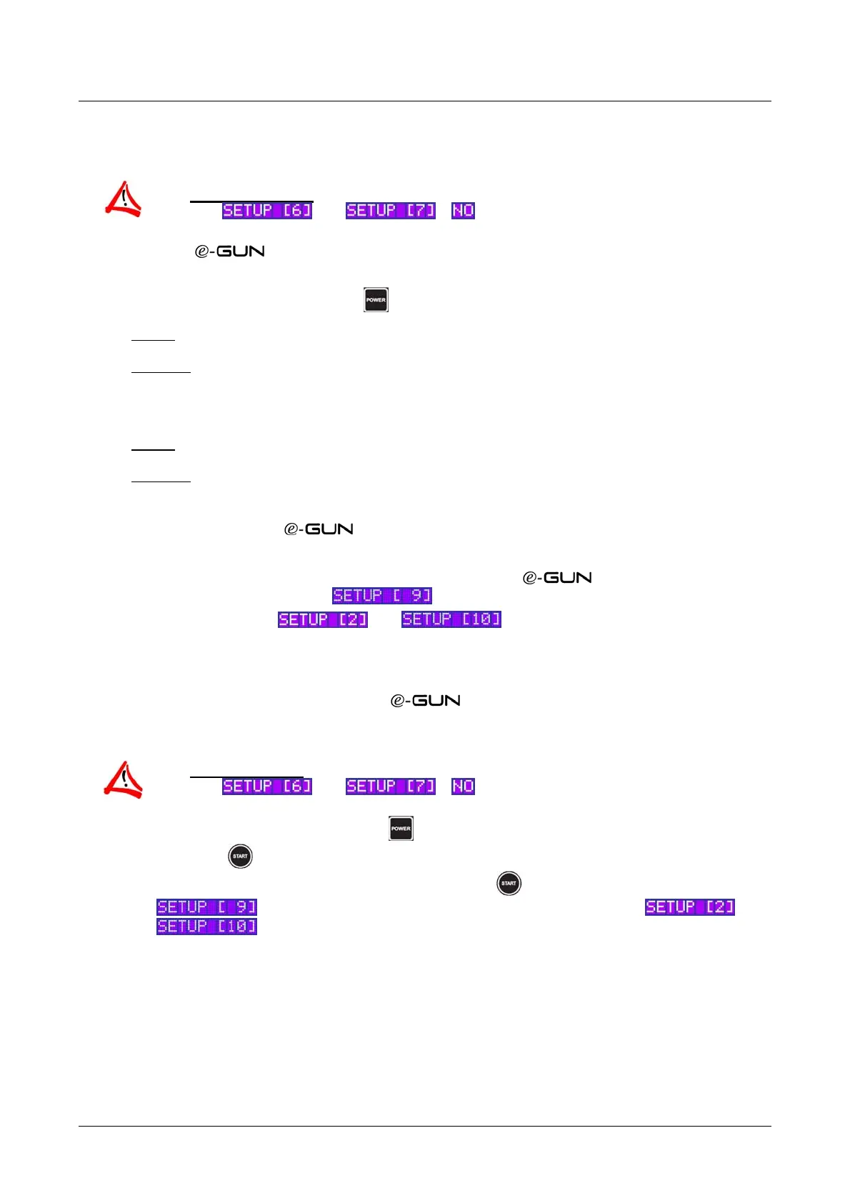 In this case, it is only possible to carry out starts and false starts with the "START" button of the