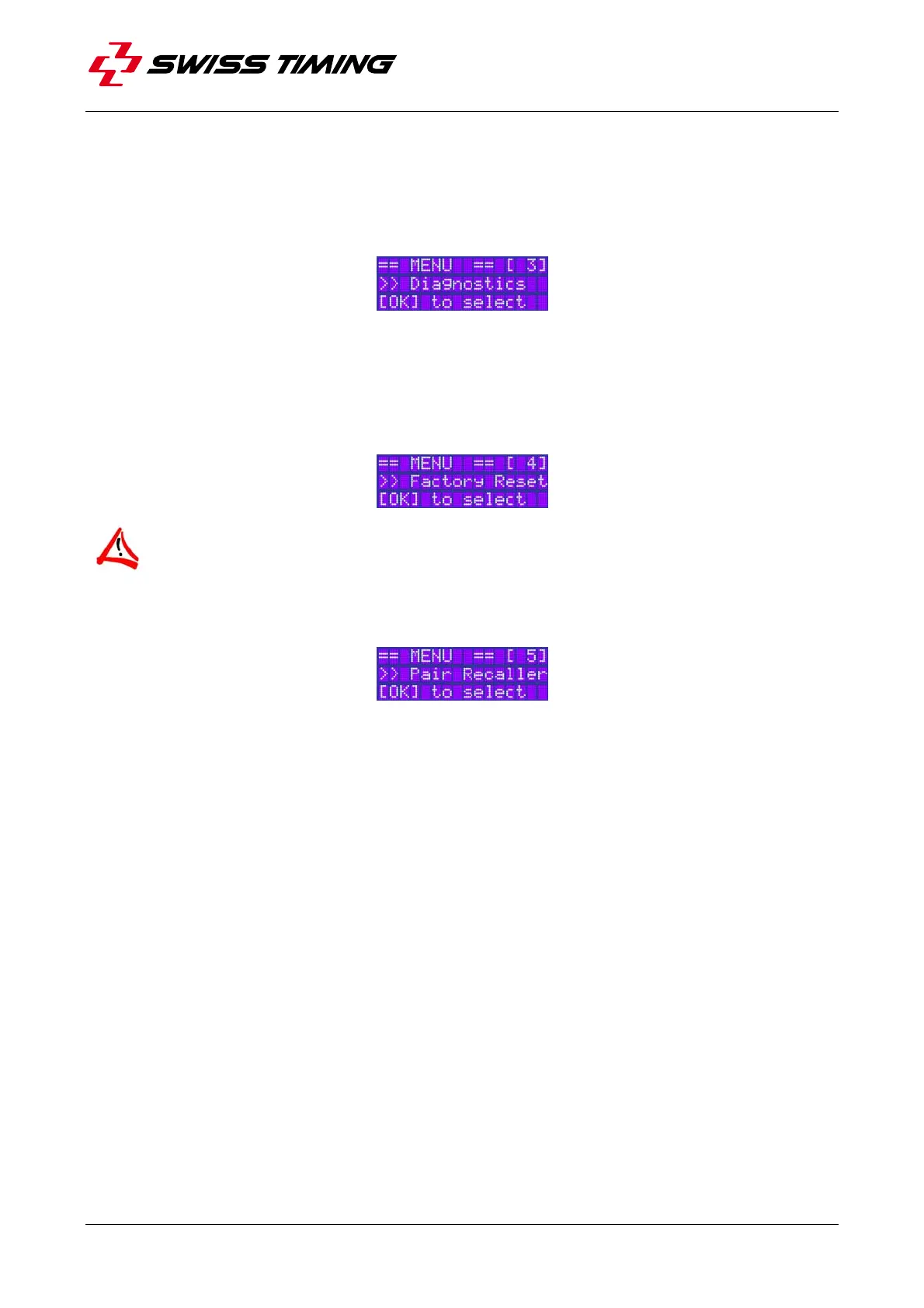 Swiss Timing MULTISPORTS E-GUN - Diagnostics; Factory Reset; Pair Recaller