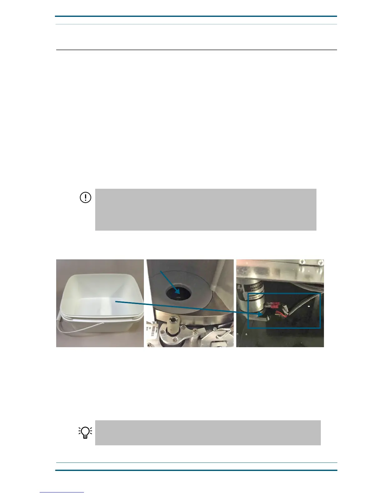 opening to the right of the lower turnstile that drains into a spill container positioned under the opening.