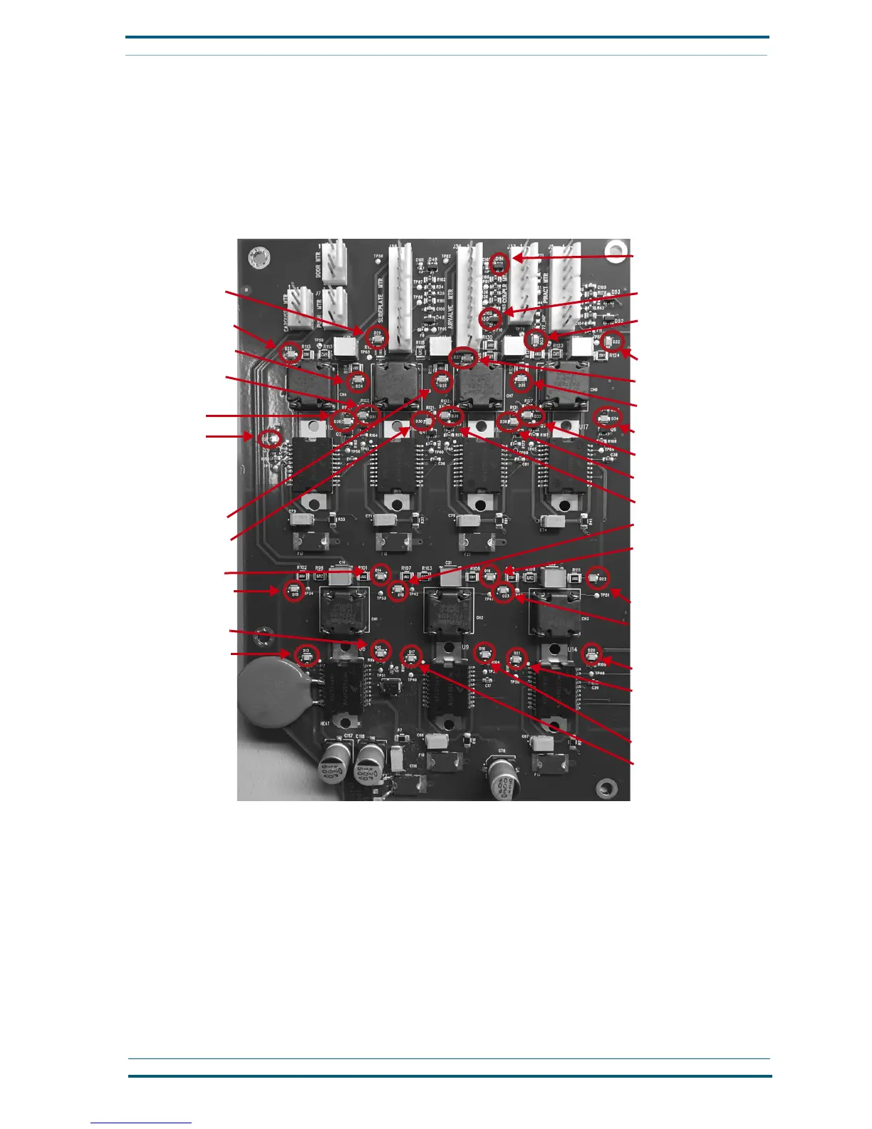 traveling between the circuit board and the affected component. The diodes work in pairs, usually to indi-