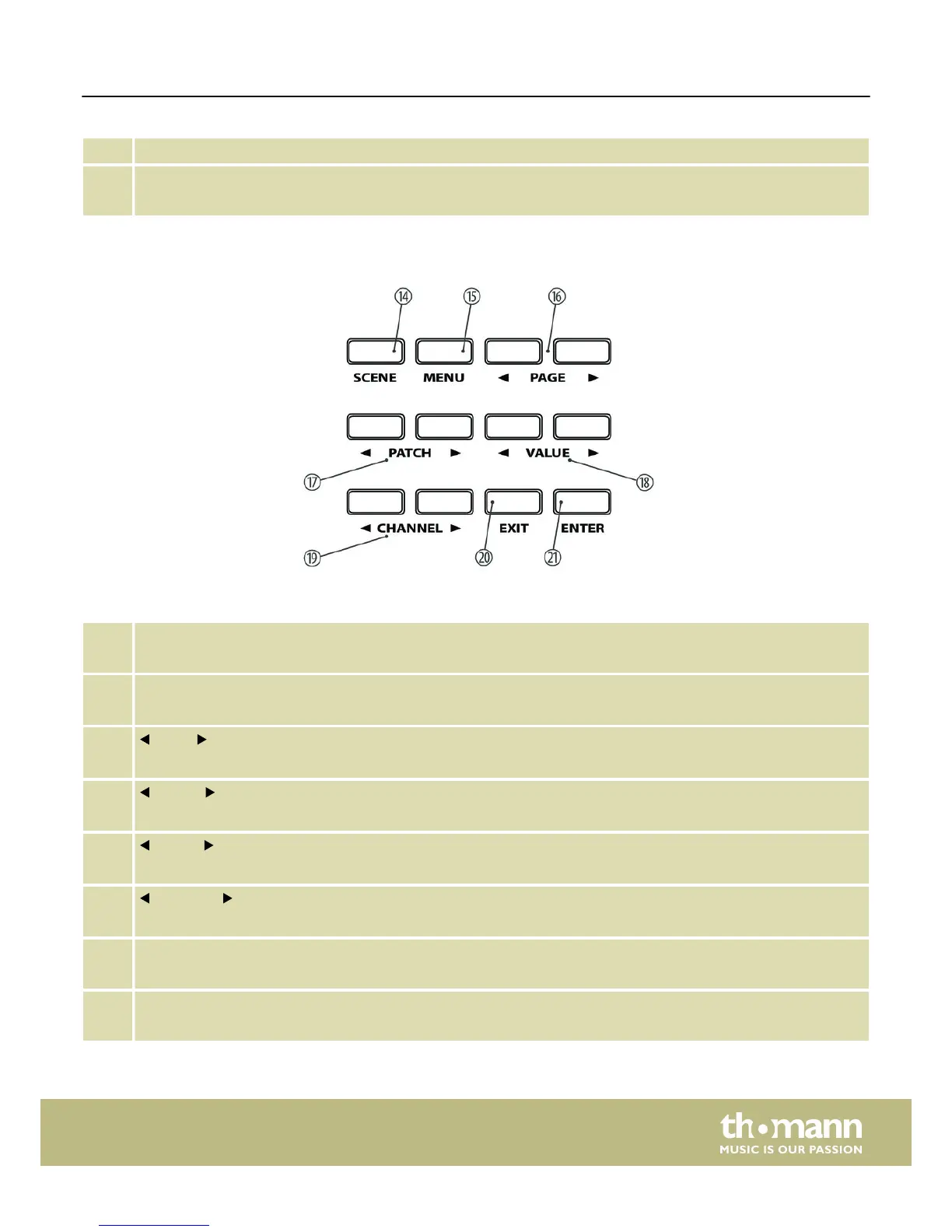 Buttons to adjust / select values / options in Edit and Scene mode.
