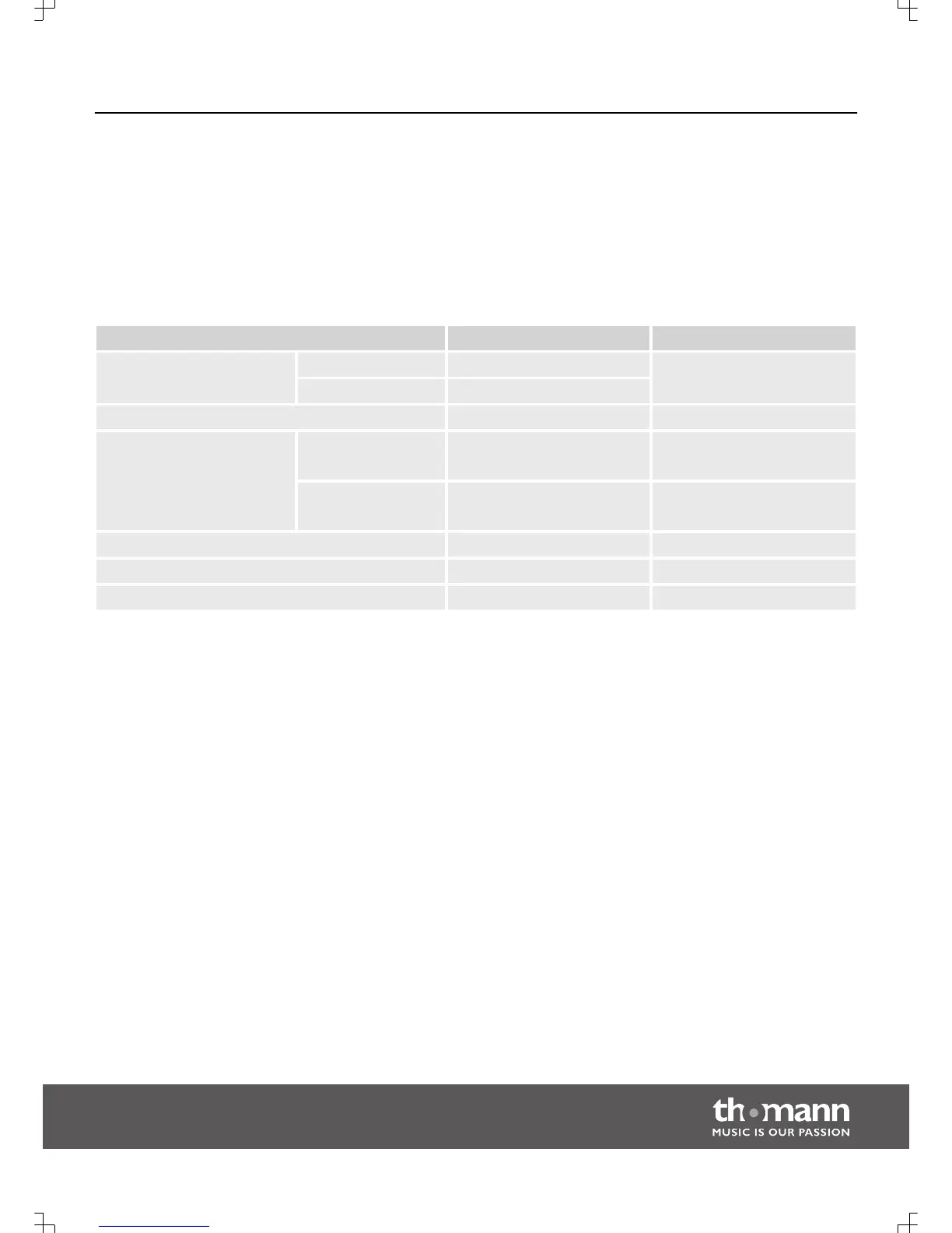 MIDI implementation chart