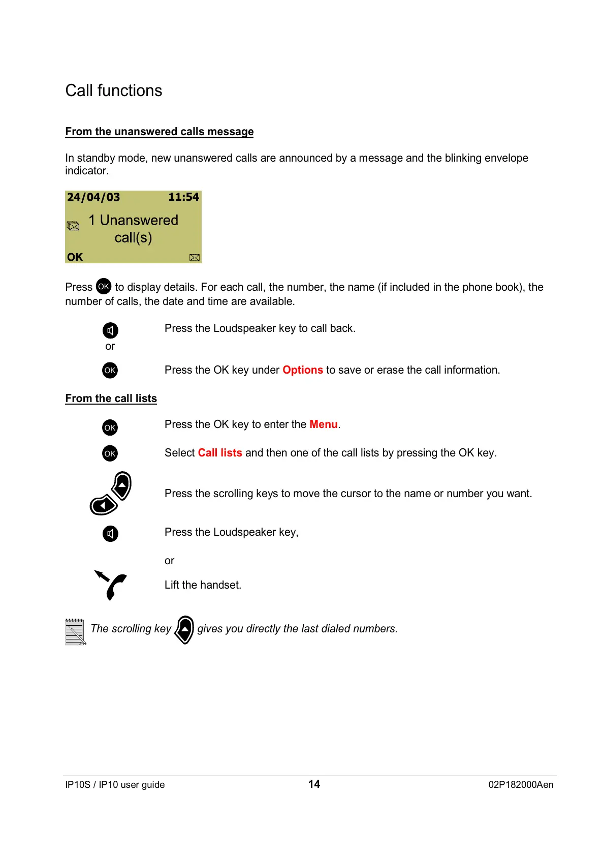 In standby mode, new unanswered calls are announced by a message and the blinking envelope