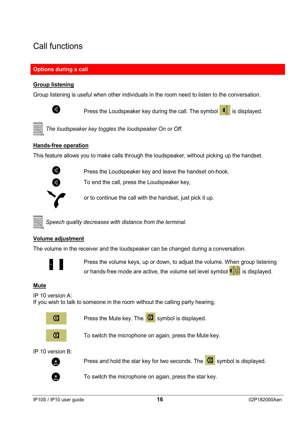 The volume in the receiver and the loudspeaker can be changed during a conversation.