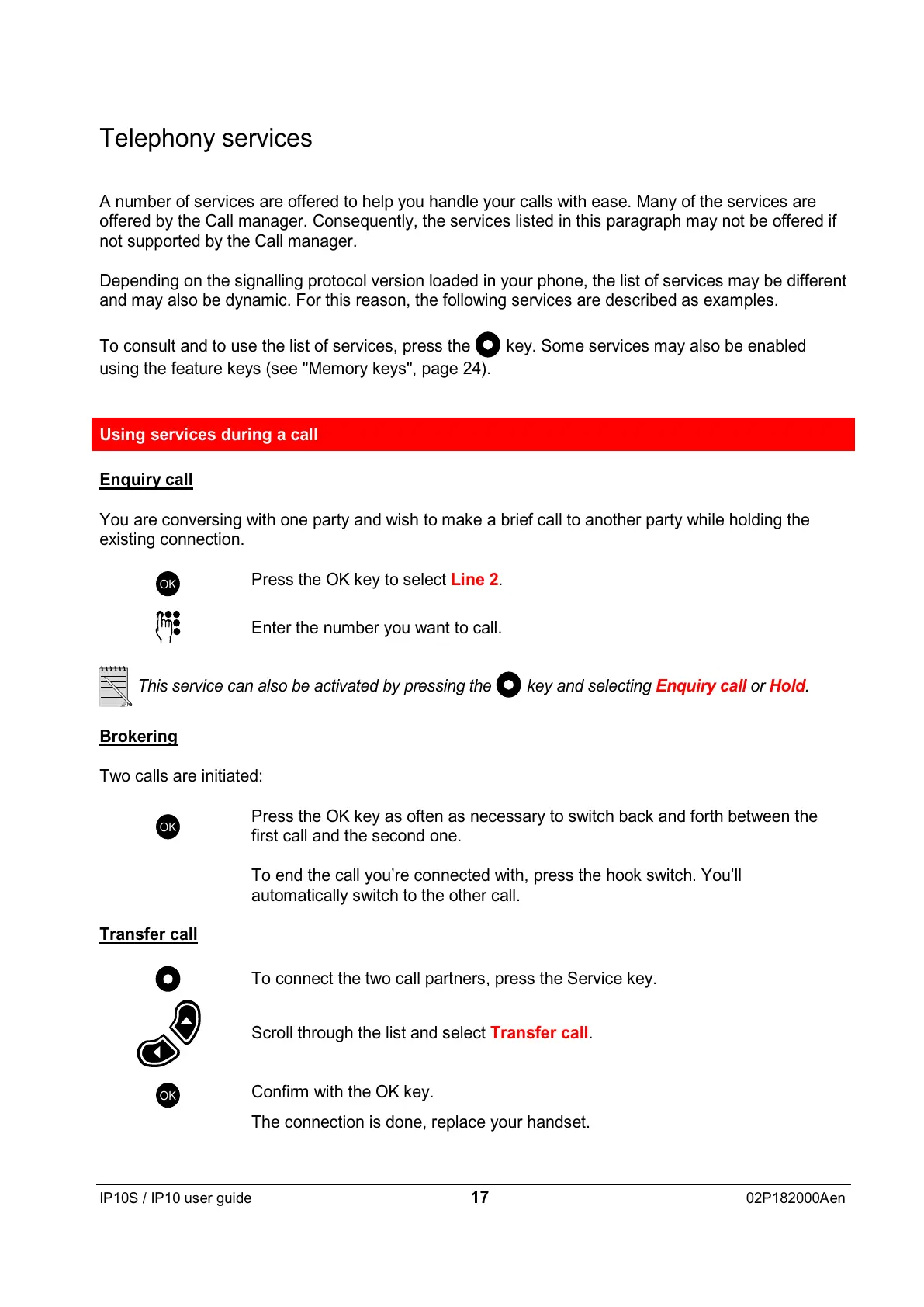 This service can also be activated by pressing the key and selecting Enquiry call or Hold.