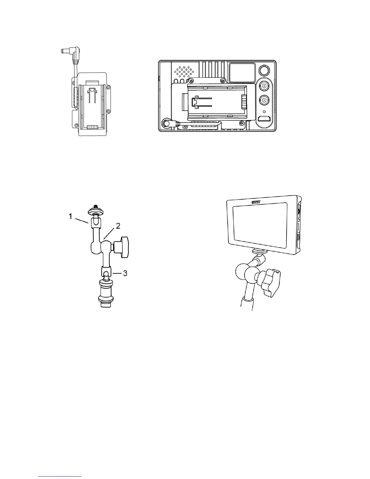 clockwise to the end. Mounting the battery to the plate can power the monitor.