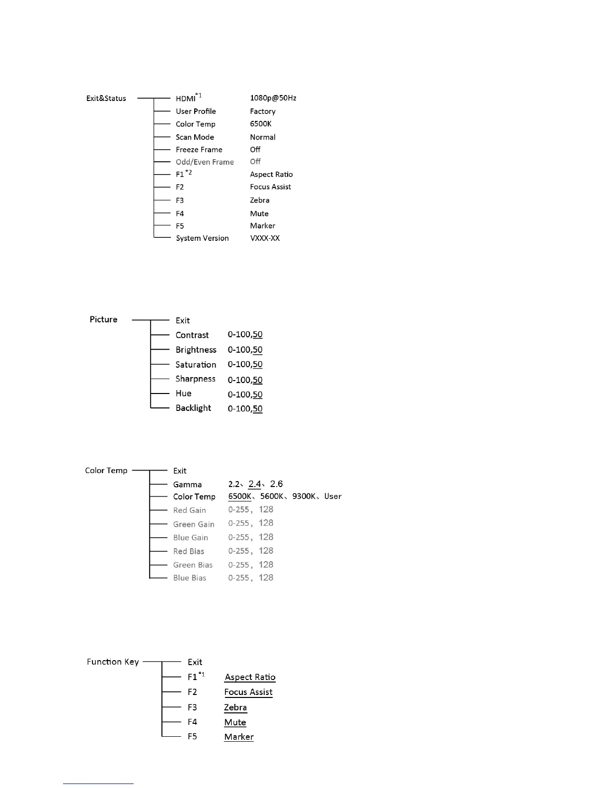 * Only “Color Temp” is set to “User”, the Red/Blue/Green Gain or Red/Blue/Green Bias can be