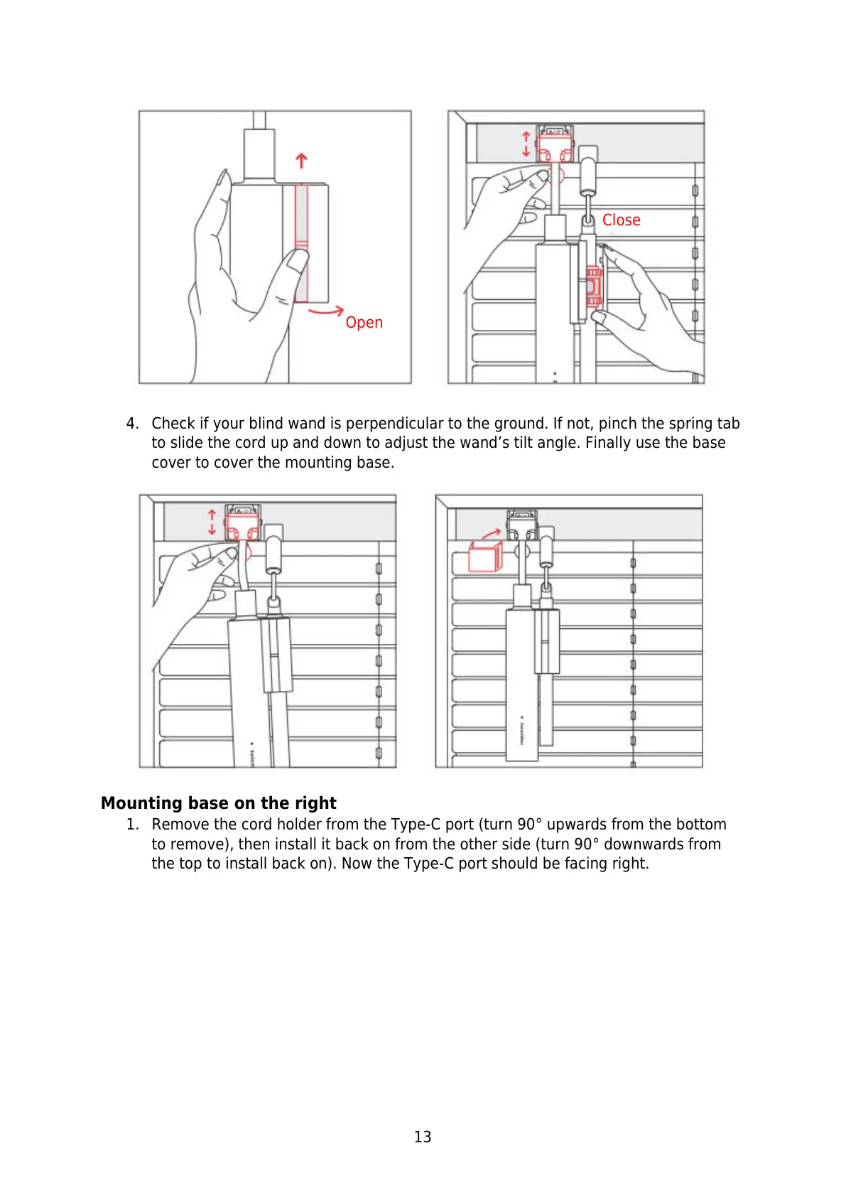to slide the cord up and down to adjust the wand’s tilt angle. Finally use the base