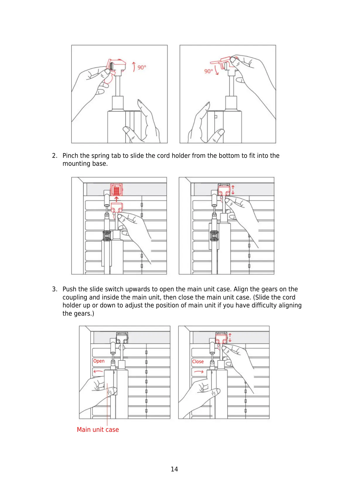 3. Push the slide switch upwards to open the main unit case. Align the gears on the