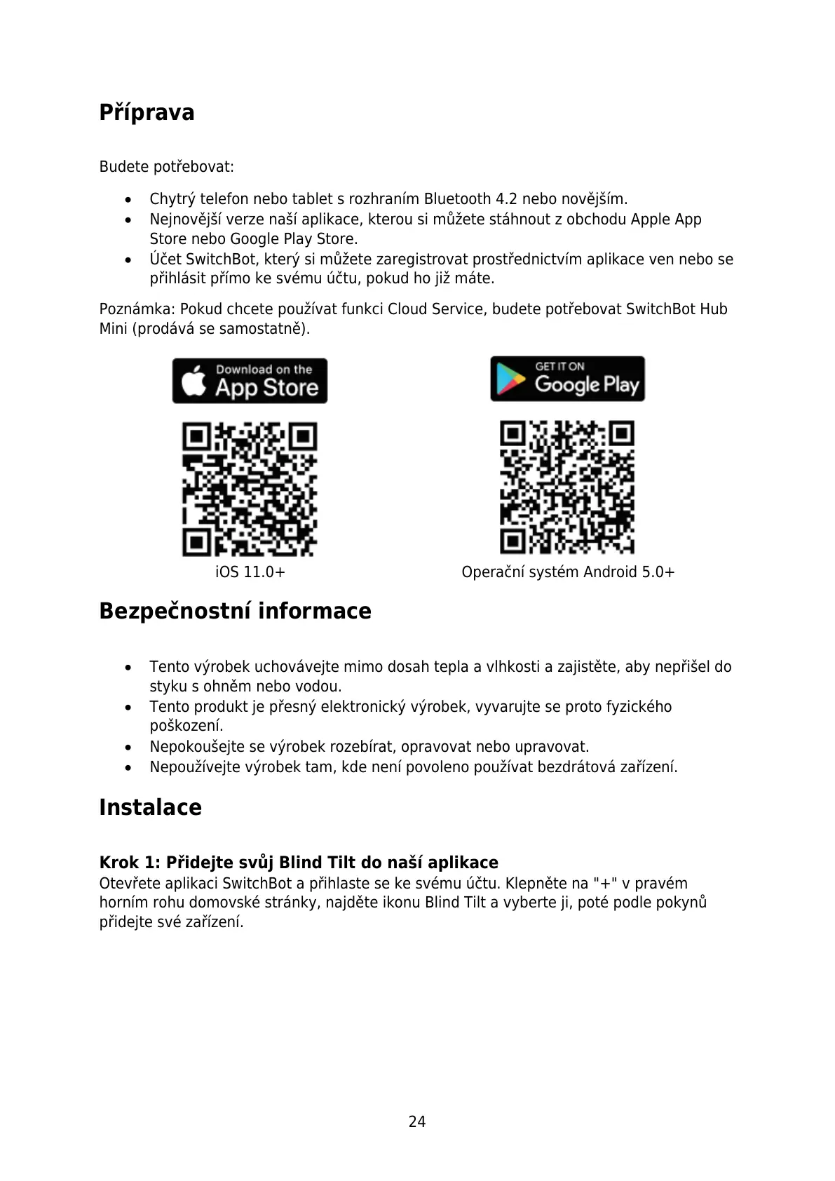 Poznámka: Pokud chcete používat funkci Cloud Service, budete potřebovat SwitchBot Hub