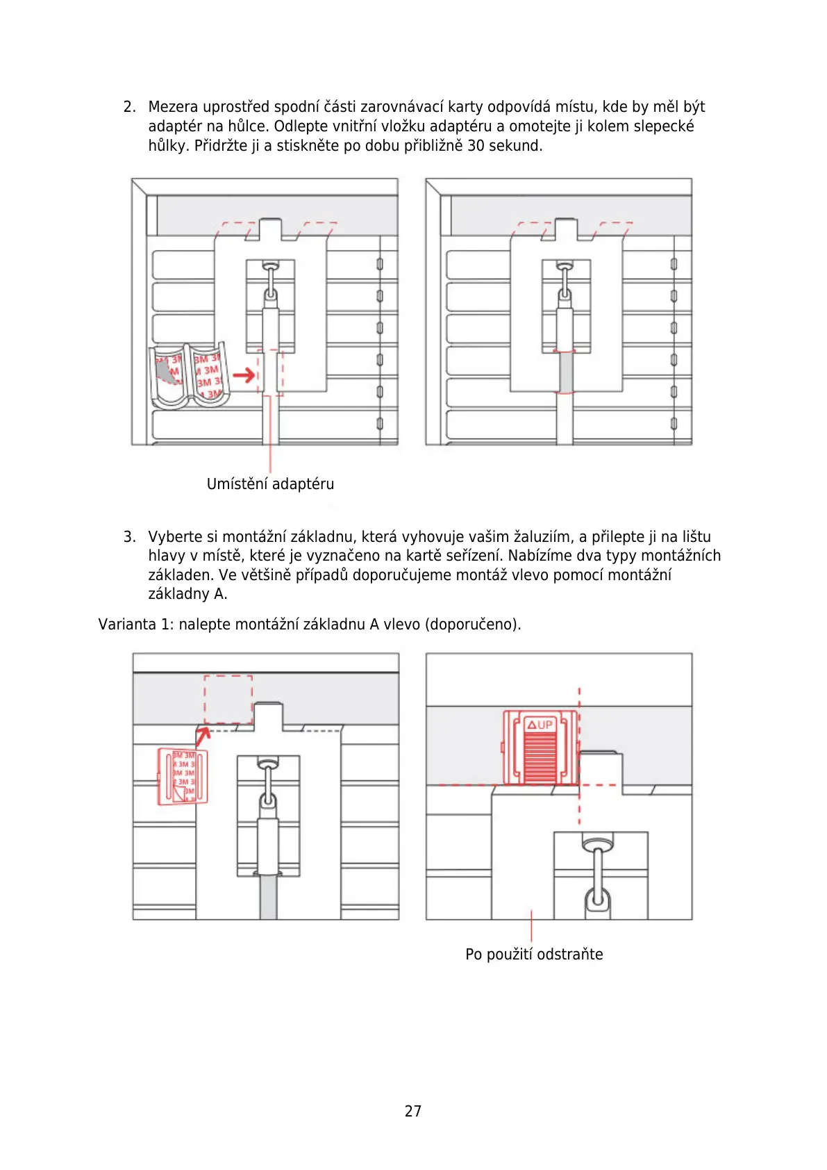 3. Vyberte si montážní základnu, která vyhovuje vašim žaluziím, a přilepte ji na lištu