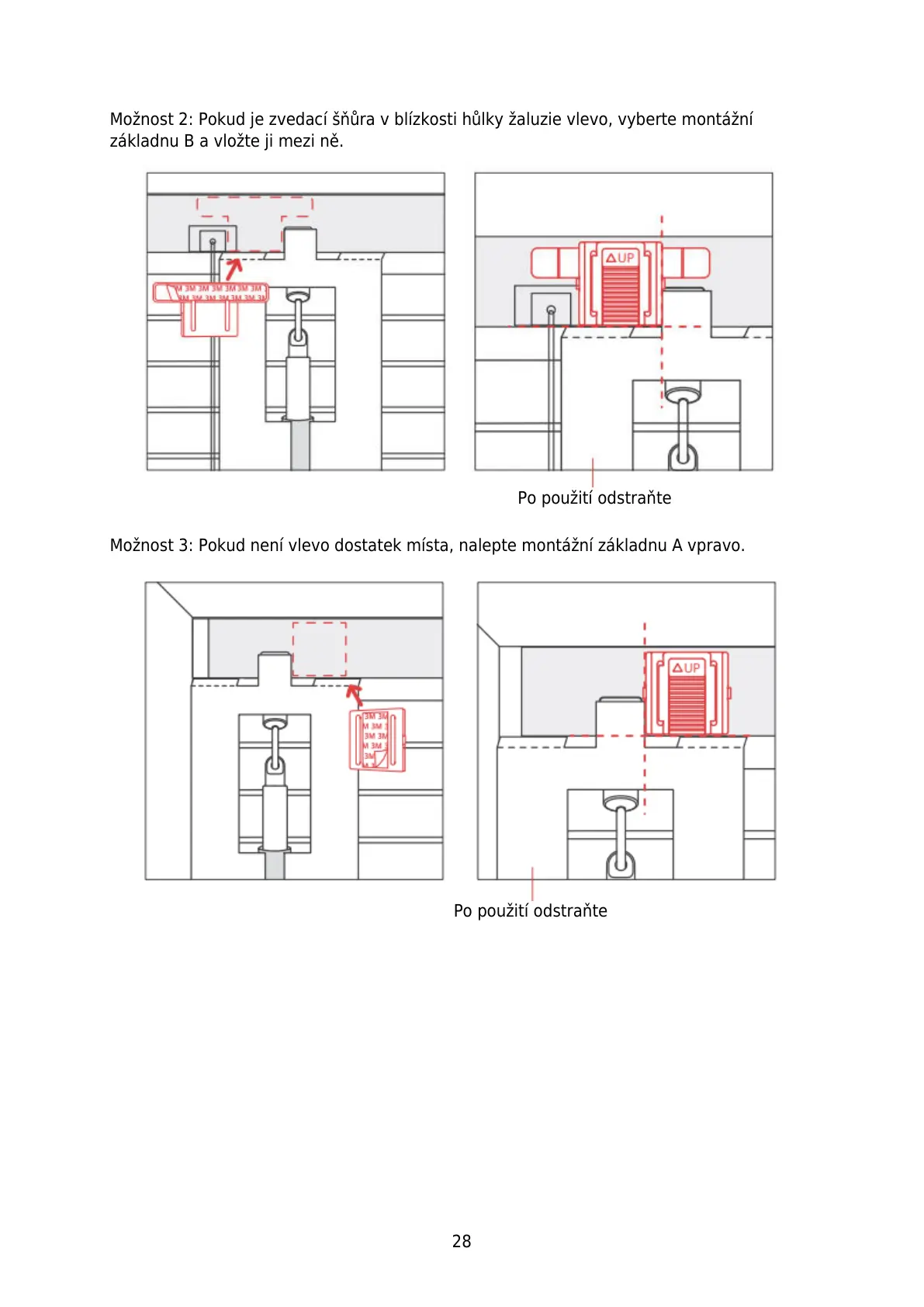 Možnost 3: Pokud není vlevo dostatek místa, nalepte montážní základnu A vpravo.