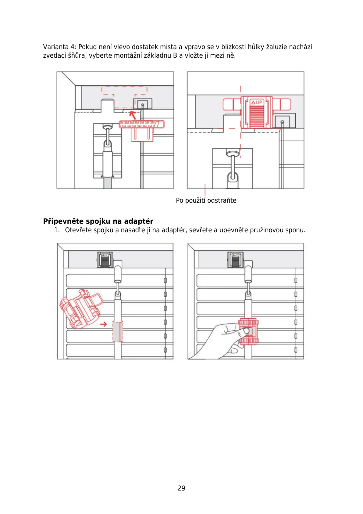 Varianta 4: Pokud není vlevo dostatek místa a vpravo se v blízkosti hůlky žaluzie nachází