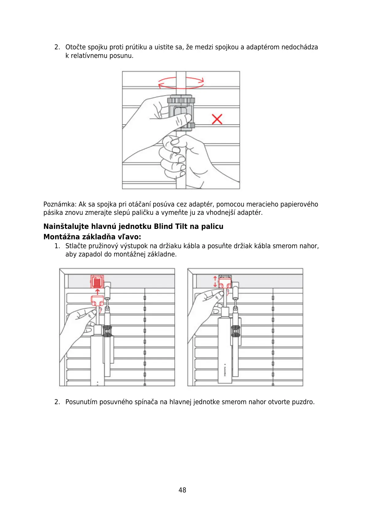 Nainštalujte hlavnú jednotku Blind Tilt na palicu