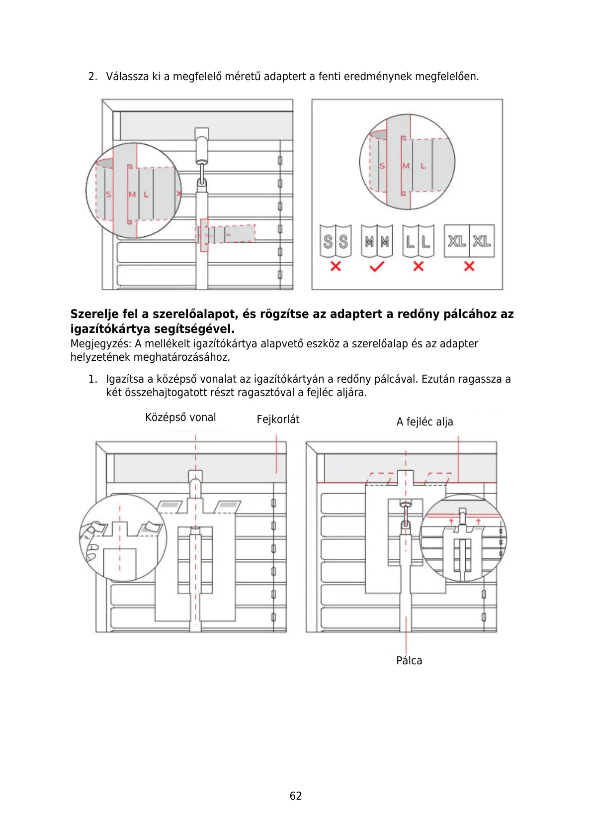 1. Igazítsa a középső vonalat az igazítókártyán a redőny pálcával. Ezután ragassza a