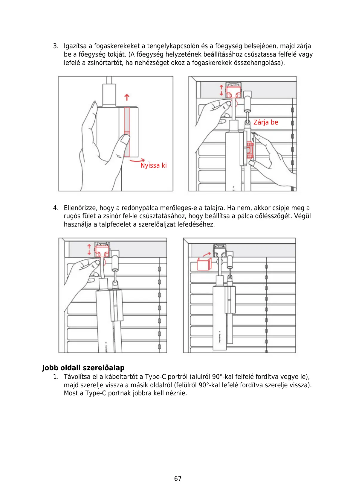 majd szerelje vissza a másik oldalról (felülről 90°-kal lefelé fordítva szerelje vissza).
