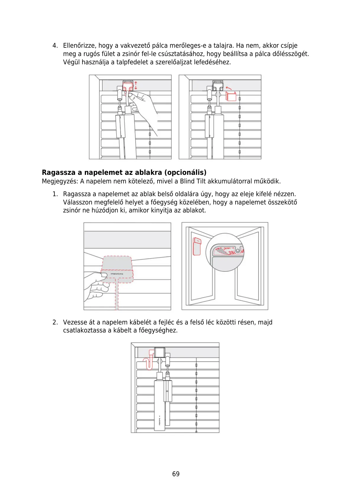 Megjegyzés: A napelem nem kötelező, mivel a Blind Tilt akkumulátorral működik.