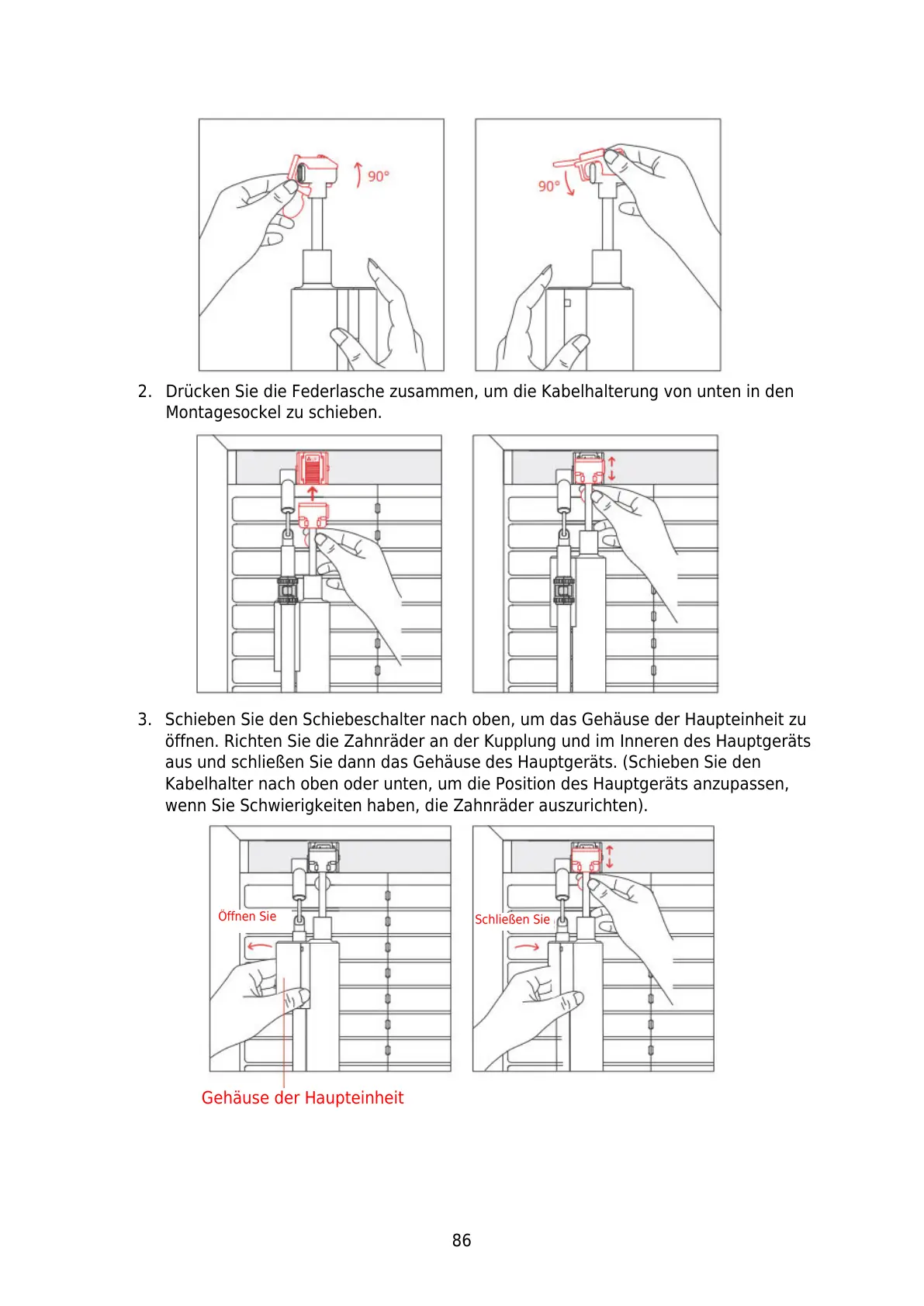 Kabelhalter nach oben oder unten, um die Position des Hauptgeräts anzupassen,