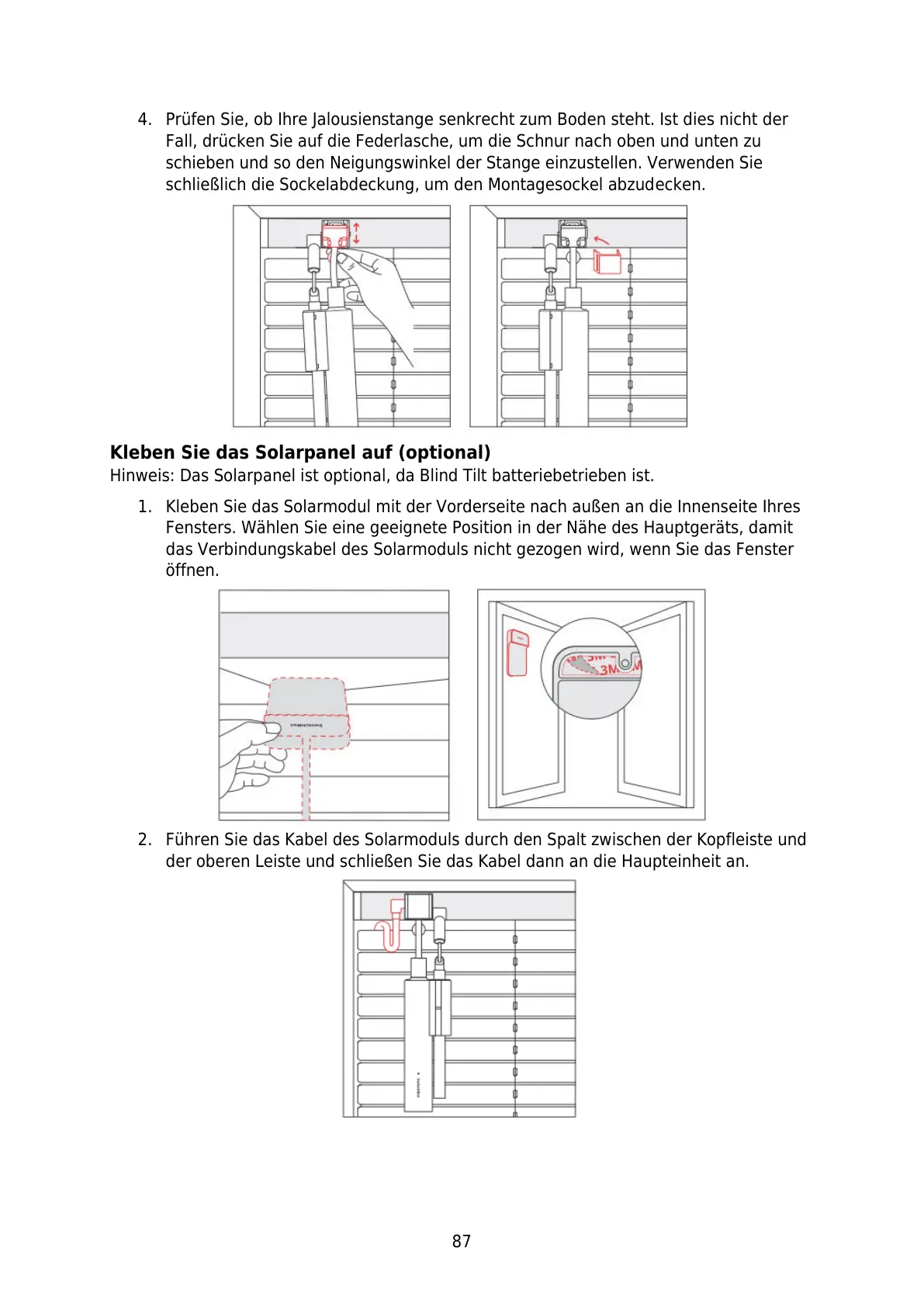 Hinweis: Das Solarpanel ist optional, da Blind Tilt batteriebetrieben ist.