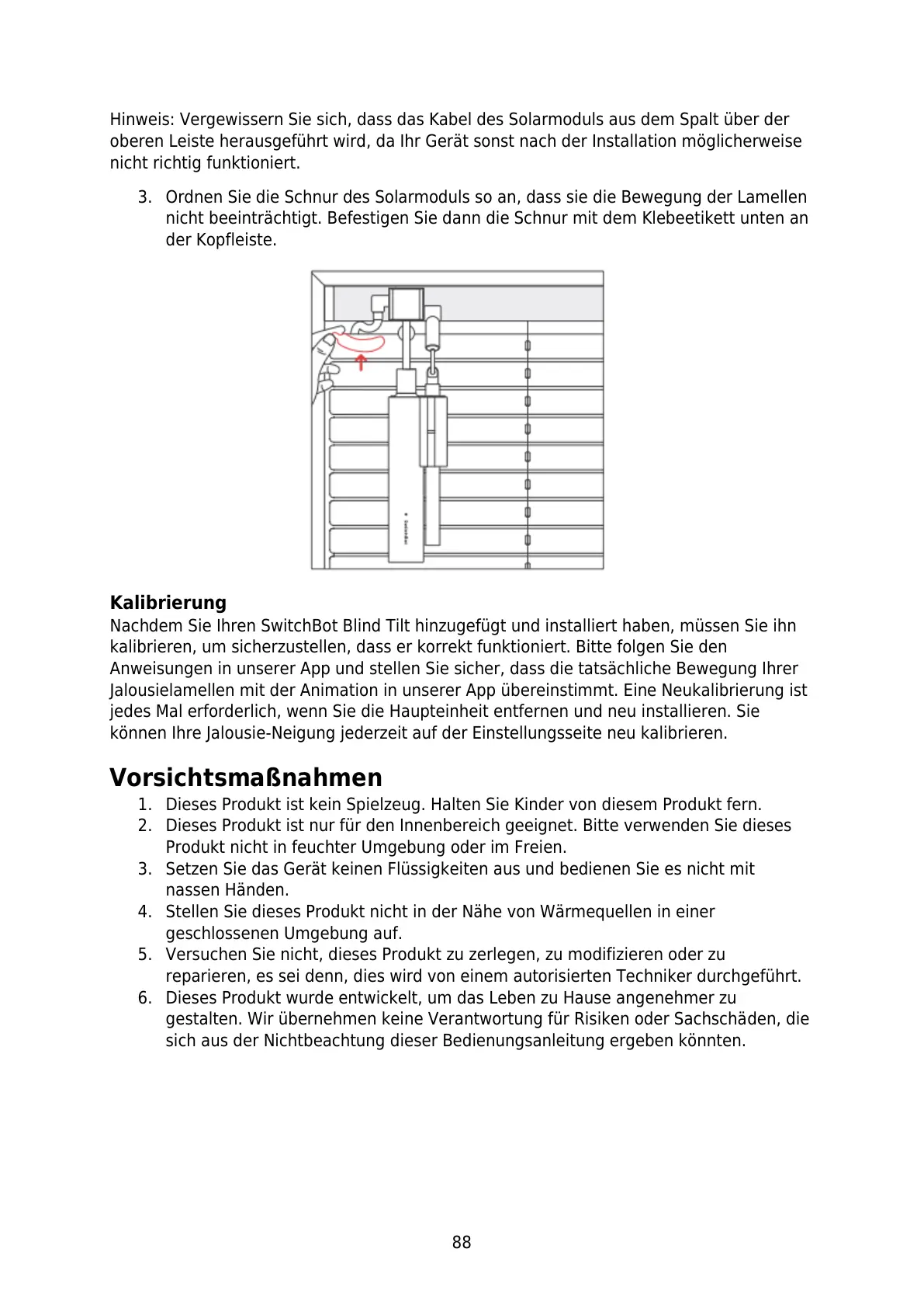 Jalousielamellen mit der Animation in unserer App übereinstimmt. Eine Neukalibrierung ist