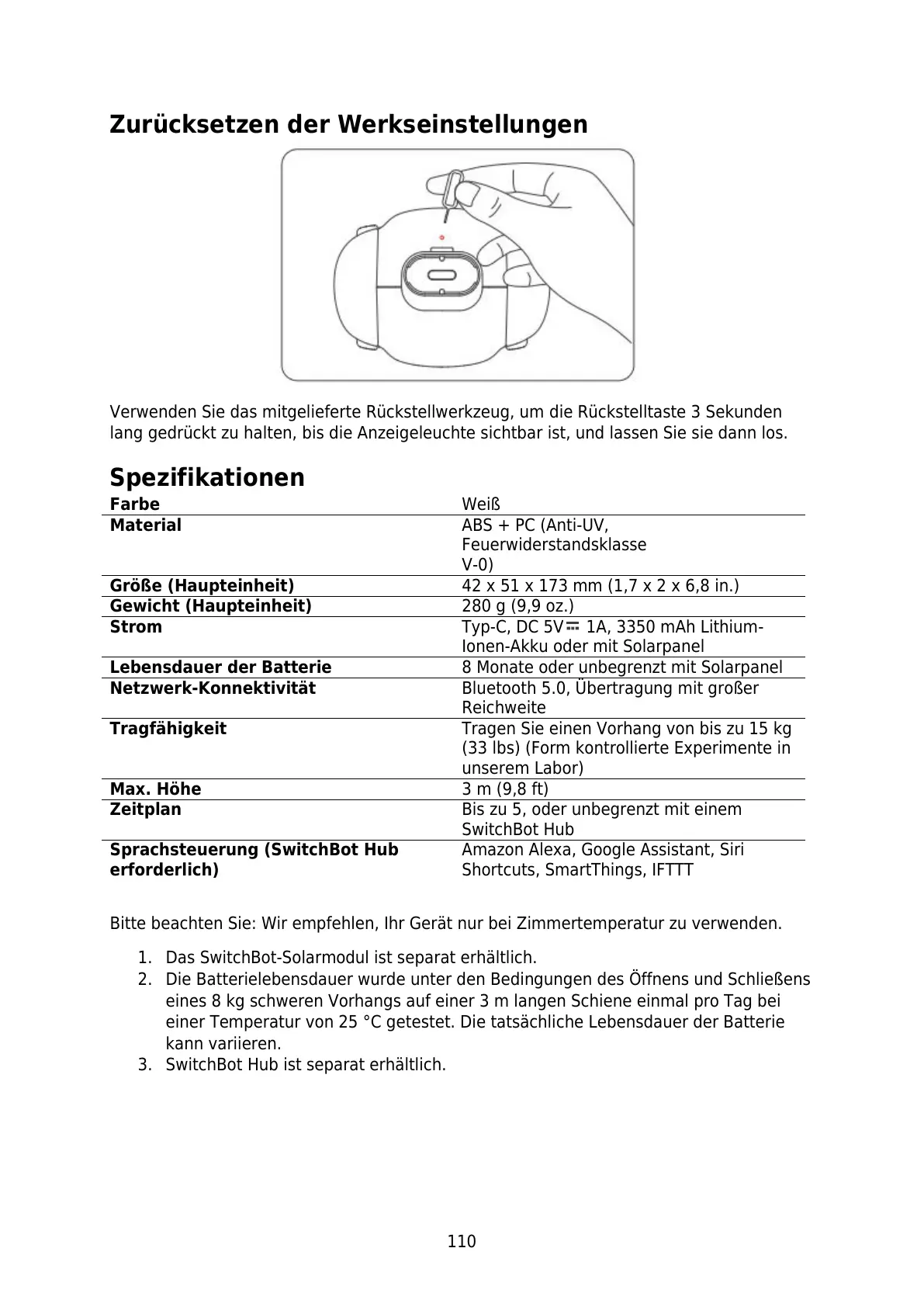 1. Das SwitchBot-Solarmodul ist separat erhältlich.