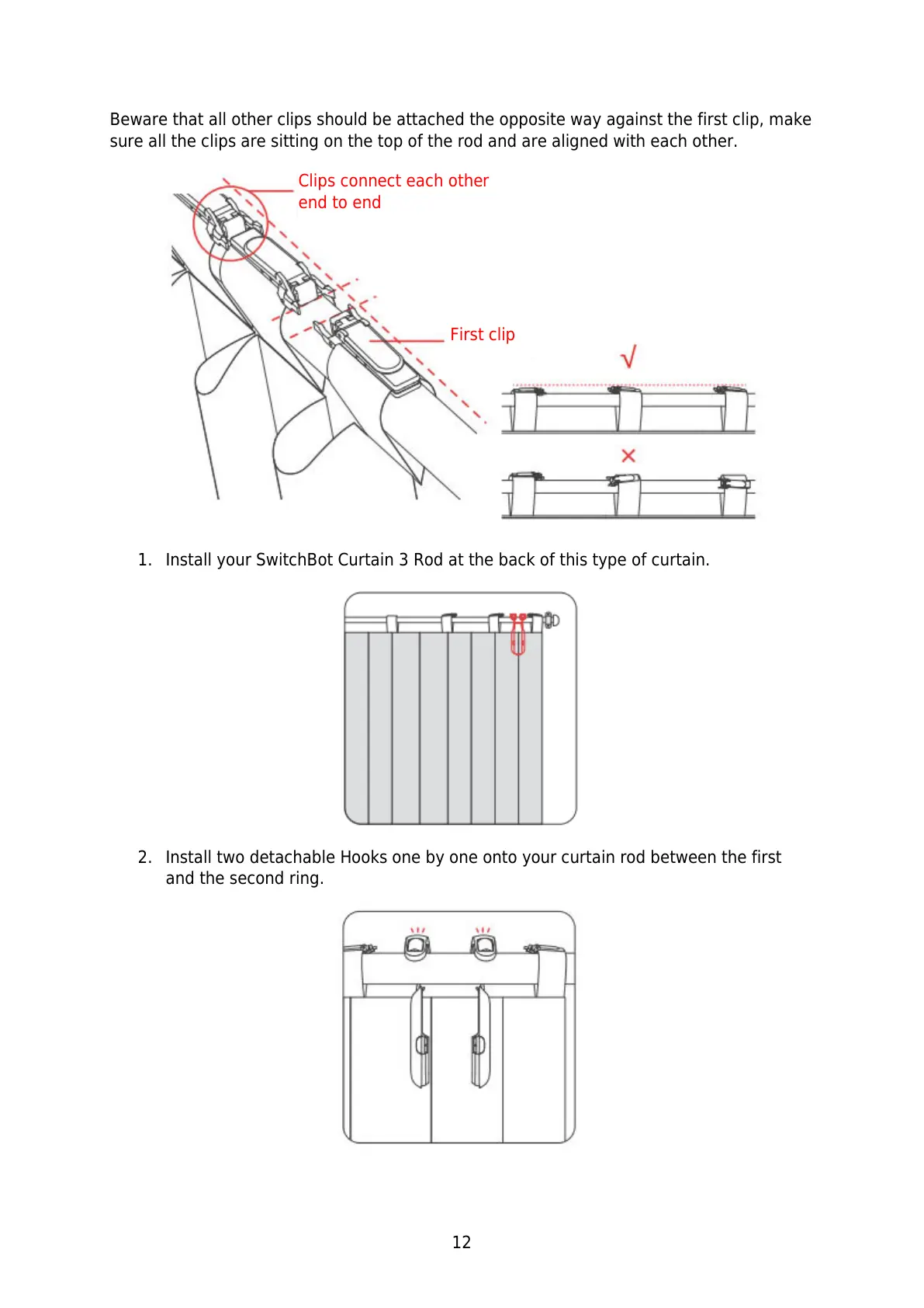 2. Install two detachable Hooks one by one onto your curtain rod between the first