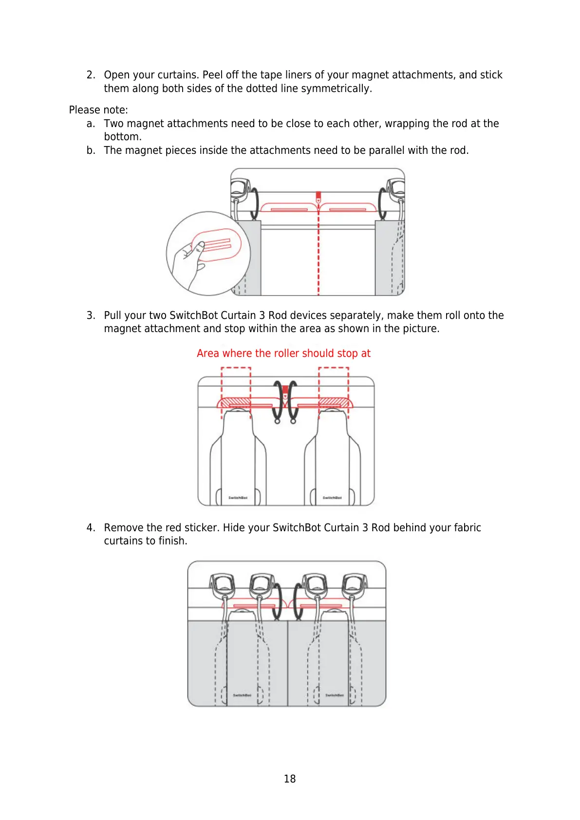 4. Remove the red sticker. Hide your SwitchBot Curtain 3 Rod behind your fabric