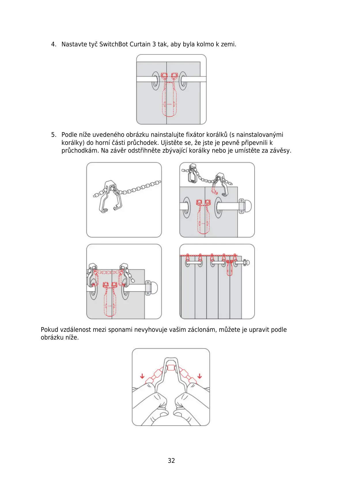Pokud vzdálenost mezi sponami nevyhovuje vašim záclonám, můžete je upravit podle