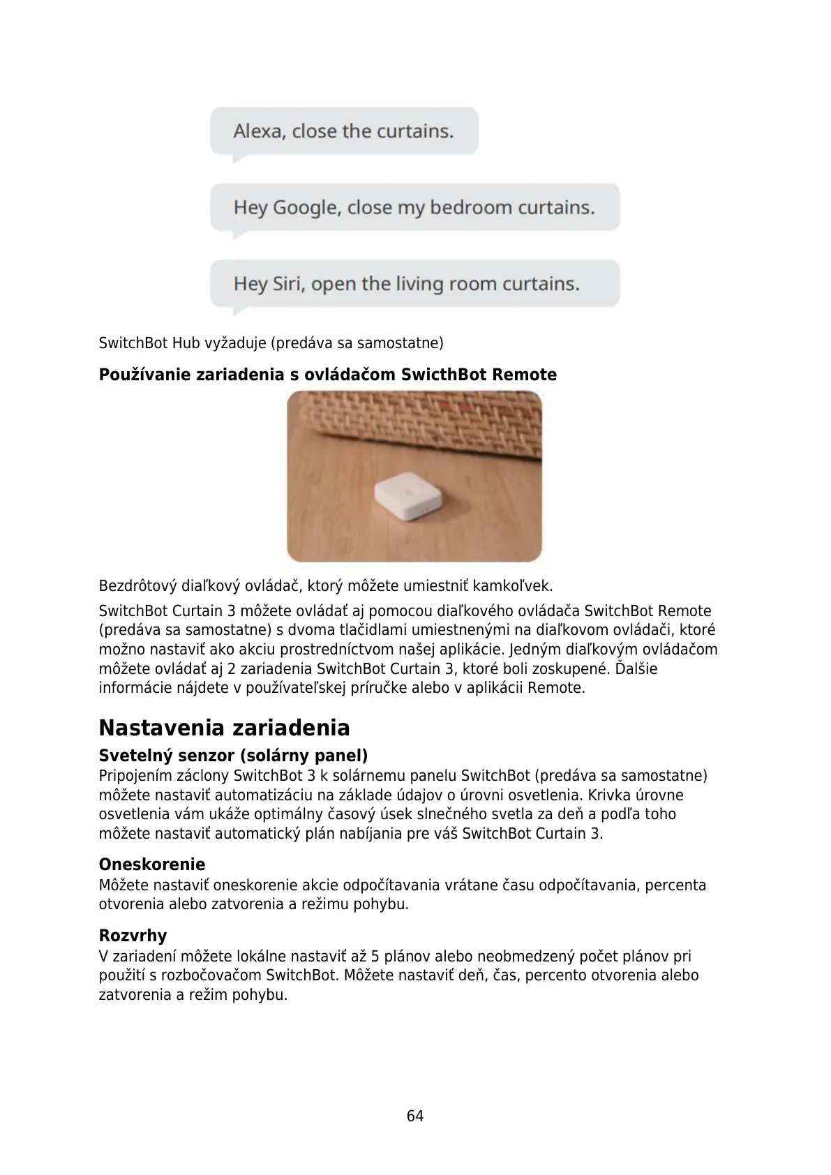 Používanie zariadenia s ovládačom SwicthBot Remote