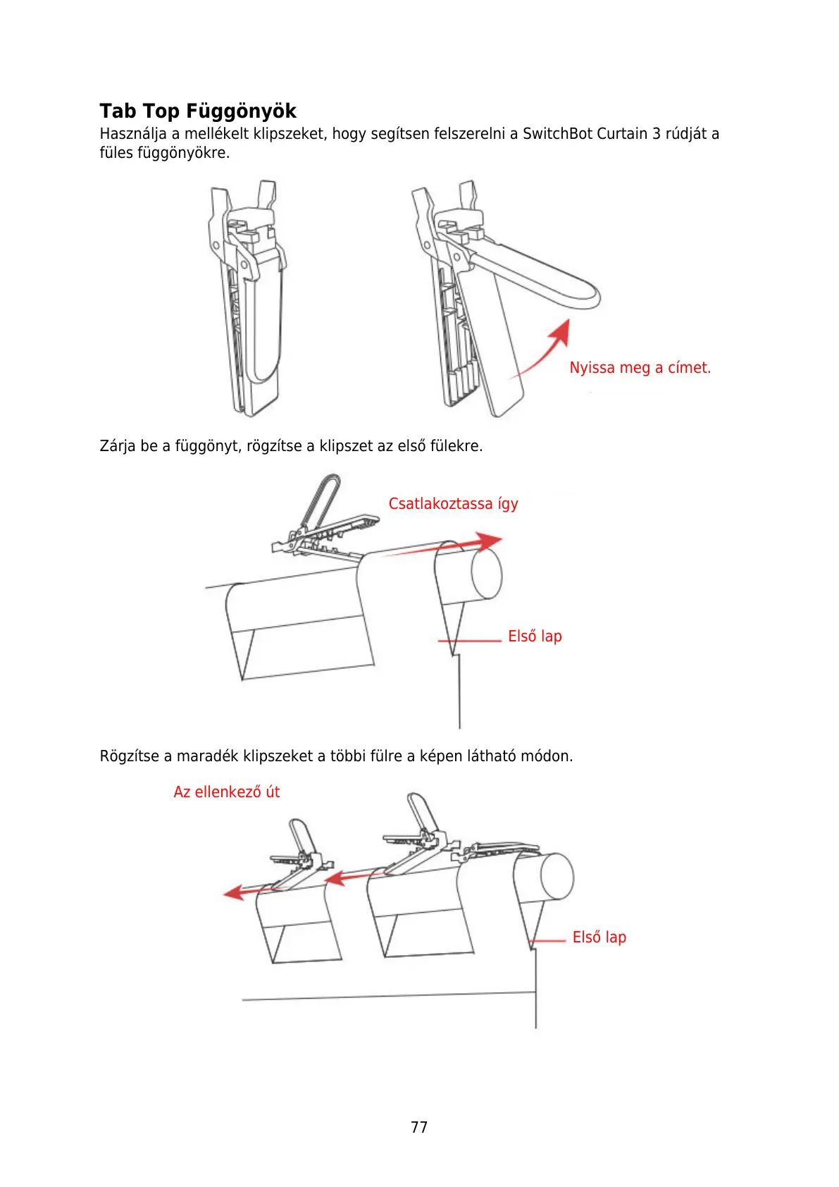 Használja a mellékelt klipszeket, hogy segítsen felszerelni a SwitchBot Curtain 3 dt a