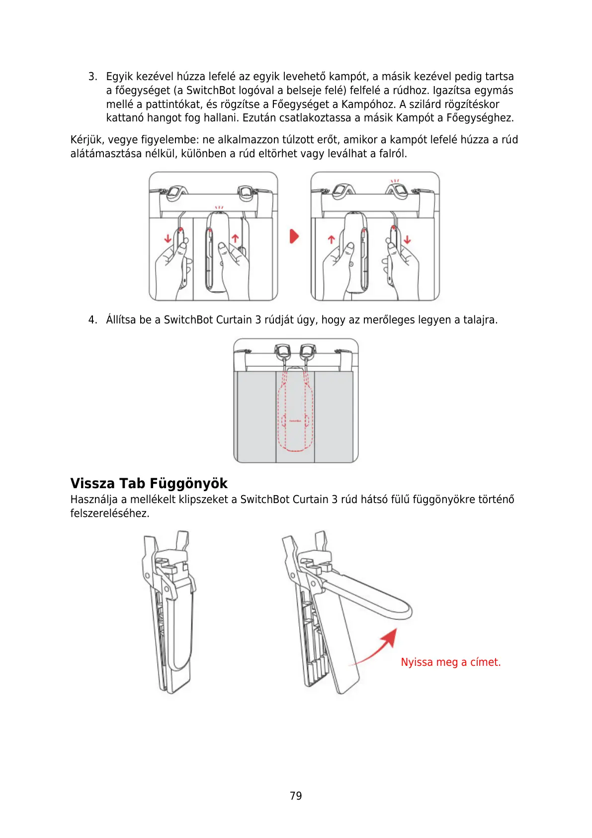 Használja a mellékelt klipszeket a SwitchBot Curtain 3 rúd hátsó fülű függönyökre történő