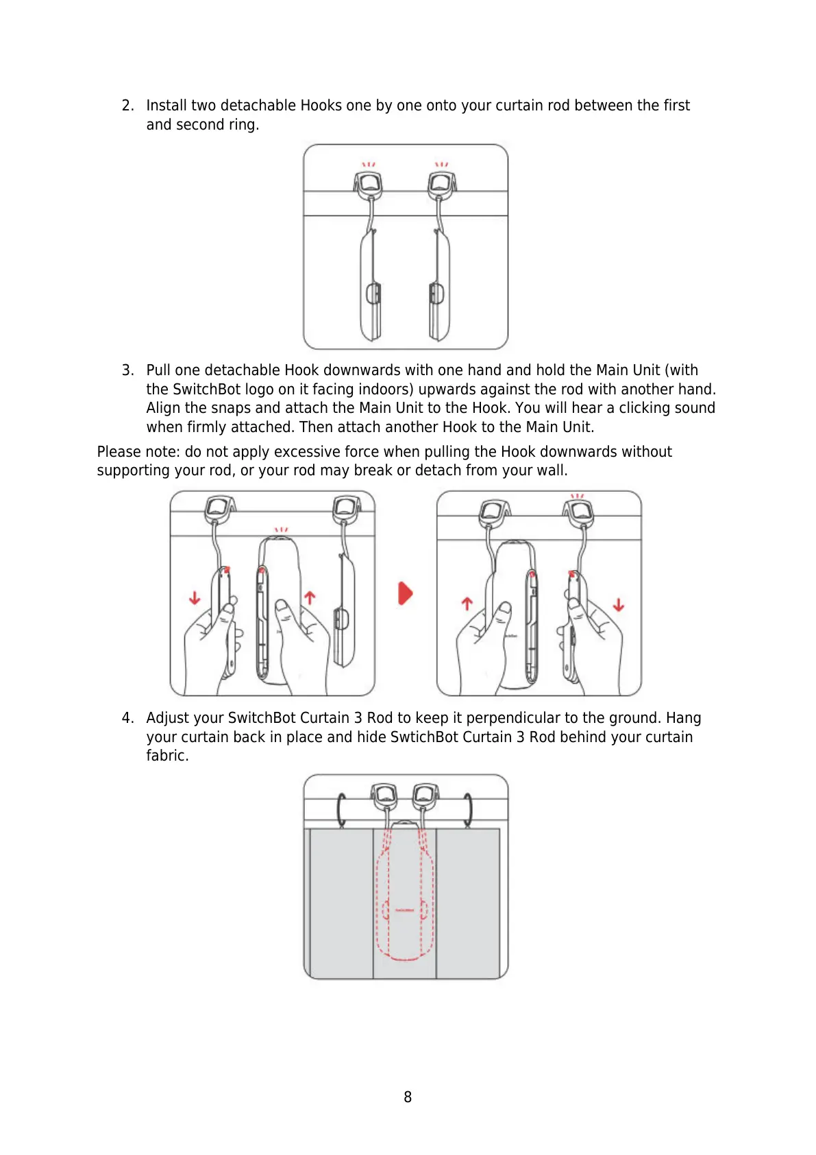 4. Adjust your SwitchBot Curtain 3 Rod to keep it perpendicular to the ground. Hang