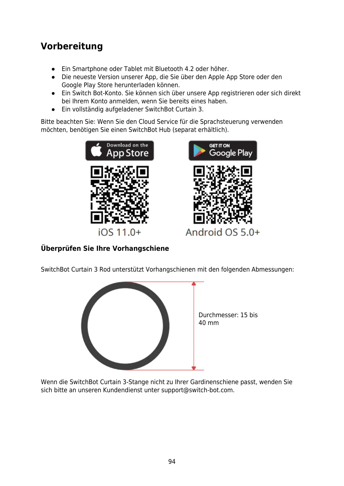 sich bitte an unseren Kundendienst unter support@switch-bot.com.