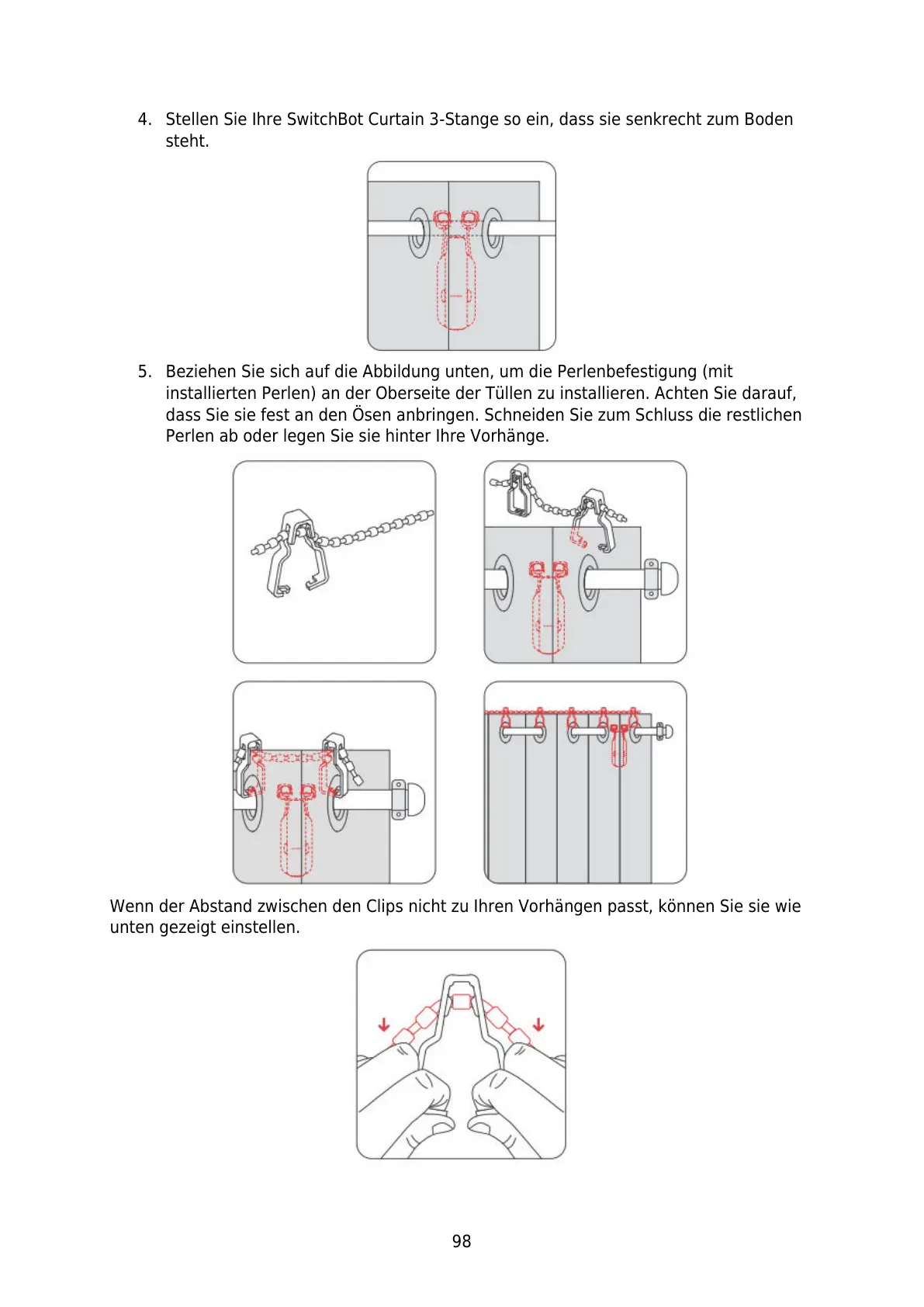Wenn der Abstand zwischen den Clips nicht zu Ihren Vorhängen passt, können Sie sie wie