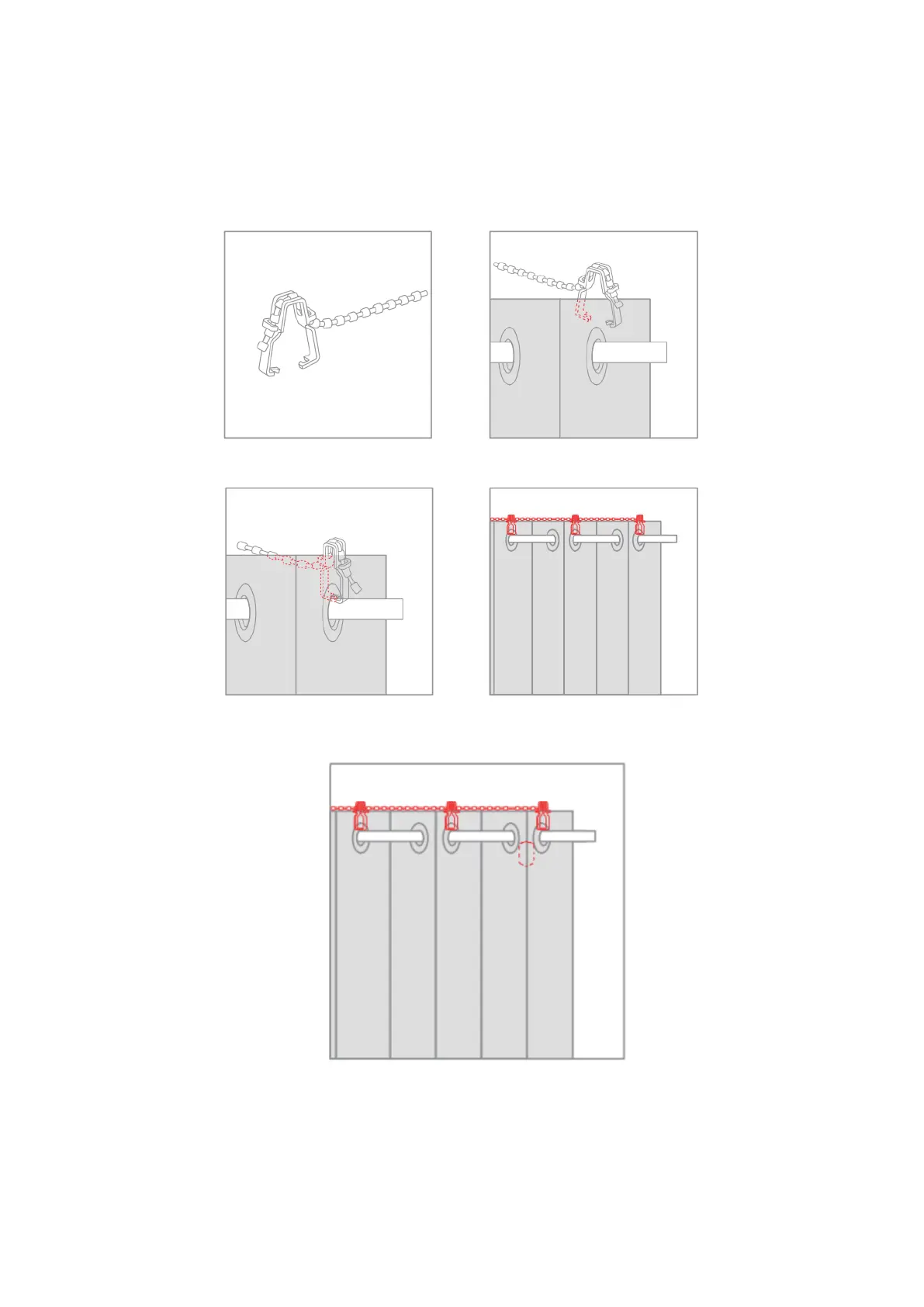 Install the beads fixer on the top of the grommets, make sure that the beads is stretched