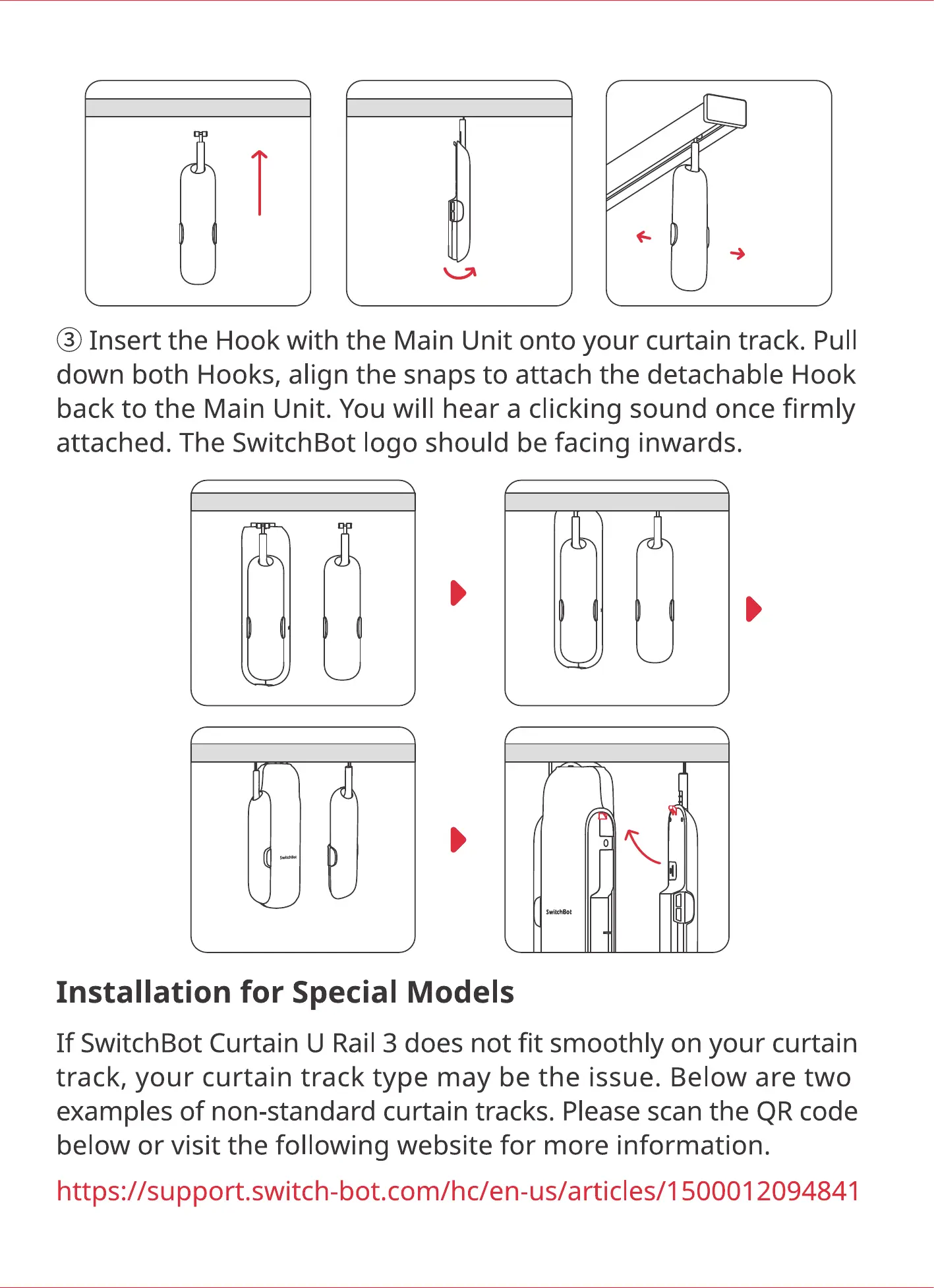 @ Insert the Hook with the Main Unit onto your curtain track. Pull
