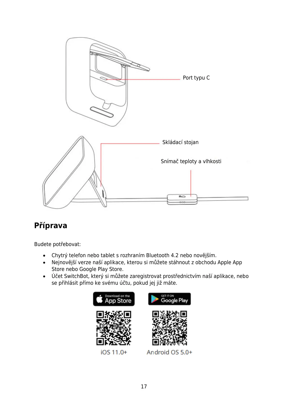 Chytrý telefon nebo tablet s rozhraním Bluetooth 4.2 nebo novějším.