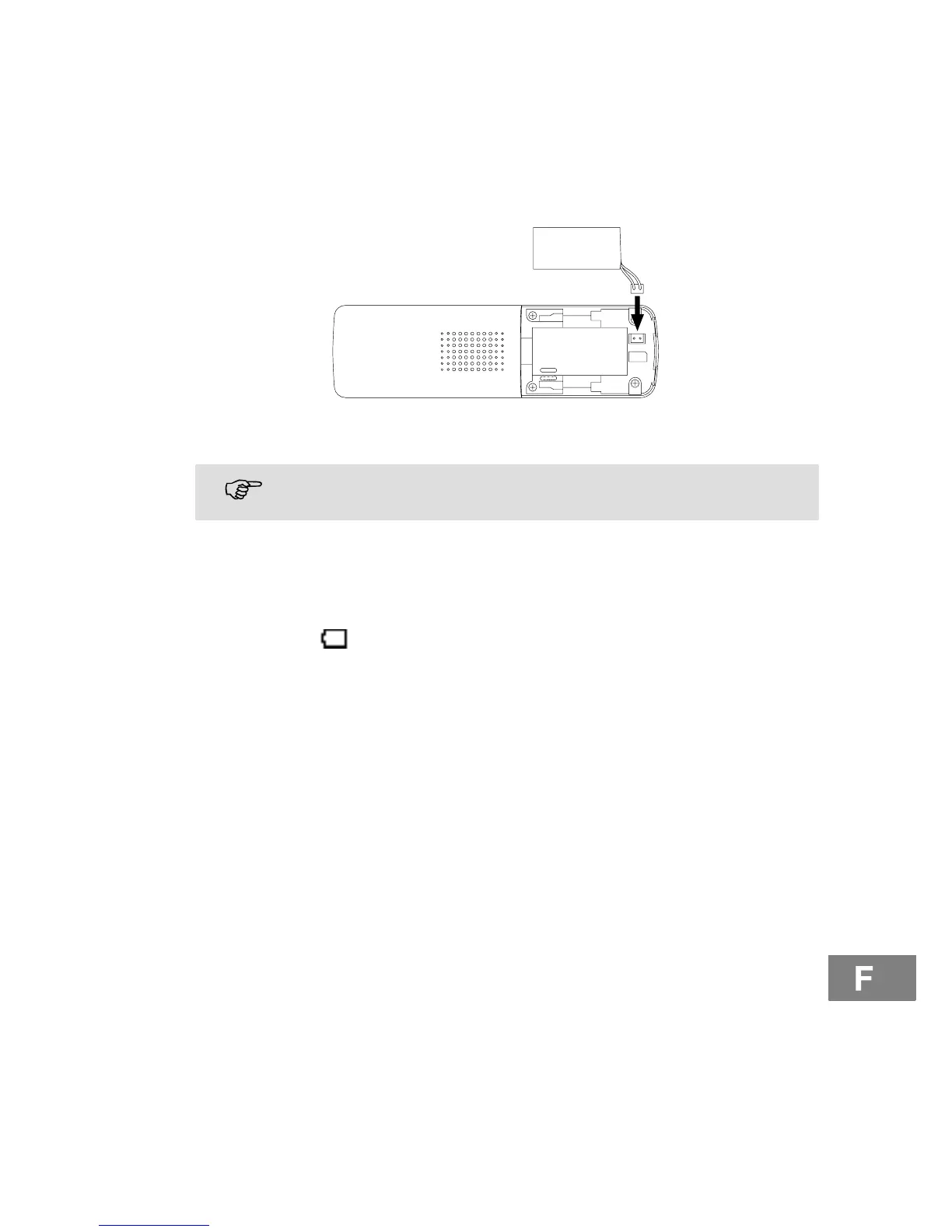 Poussez le cache batterie vers le bas et retirez−le. Enfoncez la fiche du