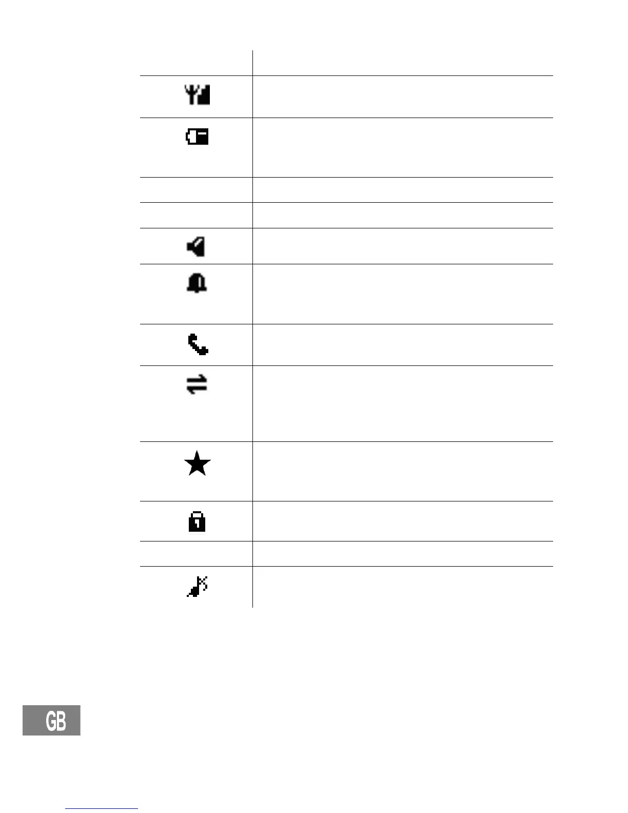 Icons in the handset display