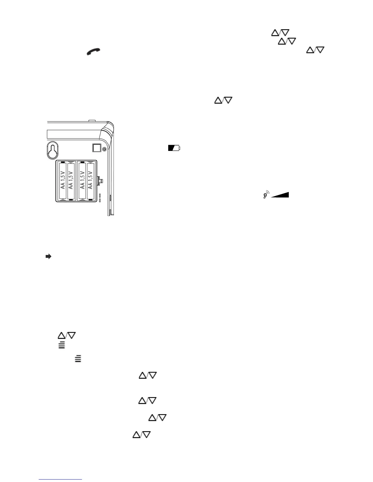 under the handset) to the listening level.
